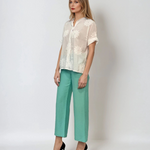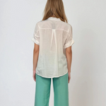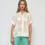 Cămașă cu guler tunică și flori brodate alb adaugă un aer rafinat și feminin oricărei ținute. Croiala lejeră și detaliile florale brodate evidențiază eleganța discretă a acestei piese, perfectă pentru zilele calde.