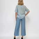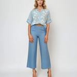 Pantaloni vaporoși cu buzunare și curea bleu sunt ideali pentru o ținută relaxată, dar stilată. Culoarea deschisă inspiră prospețime, iar croiala lejeră îi face potriviți pentru plimbări, picnicuri sau vacanțe.