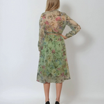 Rochie midi din voal cu print floral și curea verde
