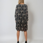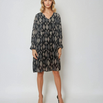 Rochie midi lejeră cu print și decolteu în V neagră