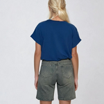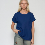 Tricou din in cu buzunar pe partea stângă albastru oferă un look relaxat și modern, potrivit pentru orice ocazie casual. Materialul natural de in asigură confort și respirabilitate, iar buzunarul lateral este un detaliu stilat și funcțional.