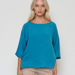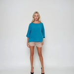 Bluză largă din in in colturi turcoaz