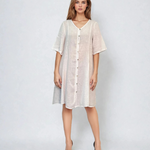 Rochie lejeră din in cu buzunare și nasturi alb
