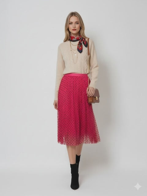 Fustă din tull cu buline mici ciclam