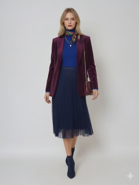 Fustă din tull cu buline mici bleumarin