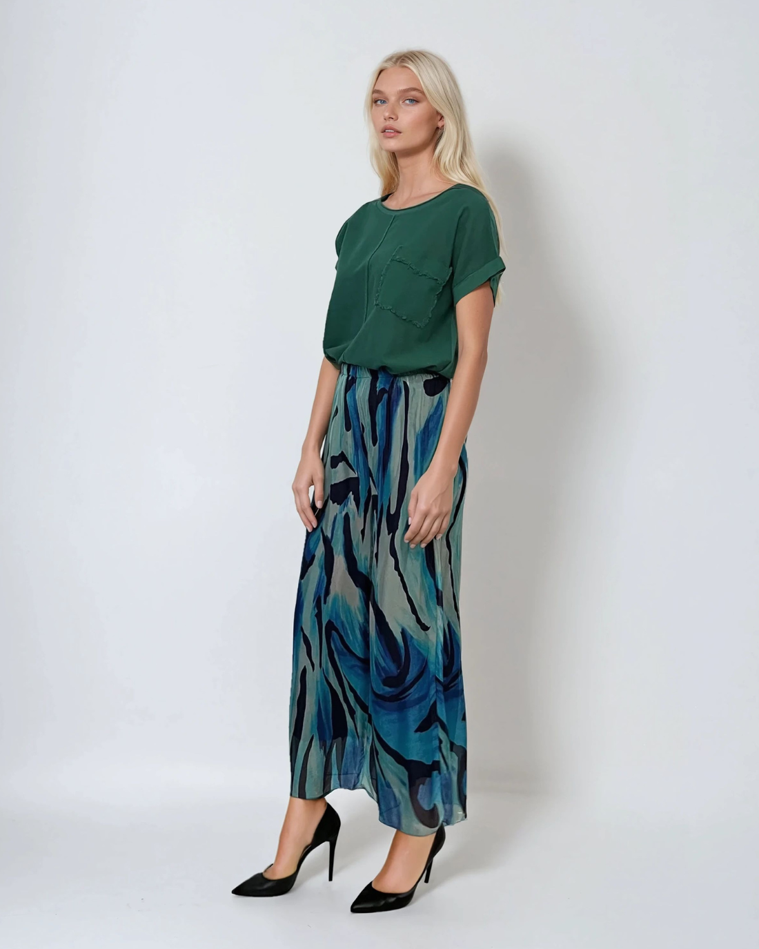 Stilizată cu sandale sau o bluză lejeră, această fustă pantaloni devine rapid piesa preferată din garderobă.