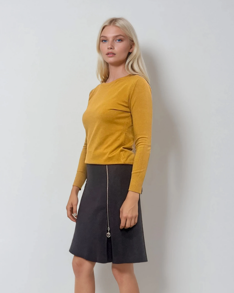 Fustă scurtă cu fermoar pe picior crem