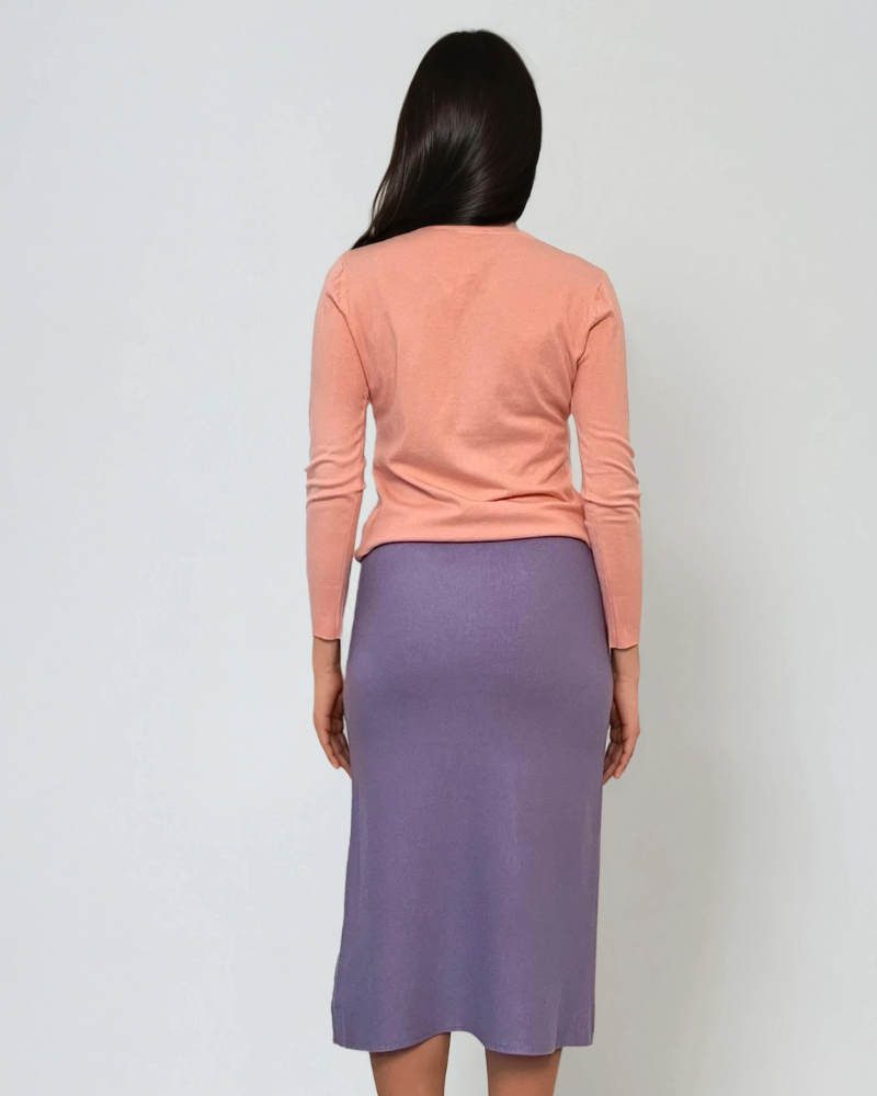 Fustă midi tricotată cu buzunare lila