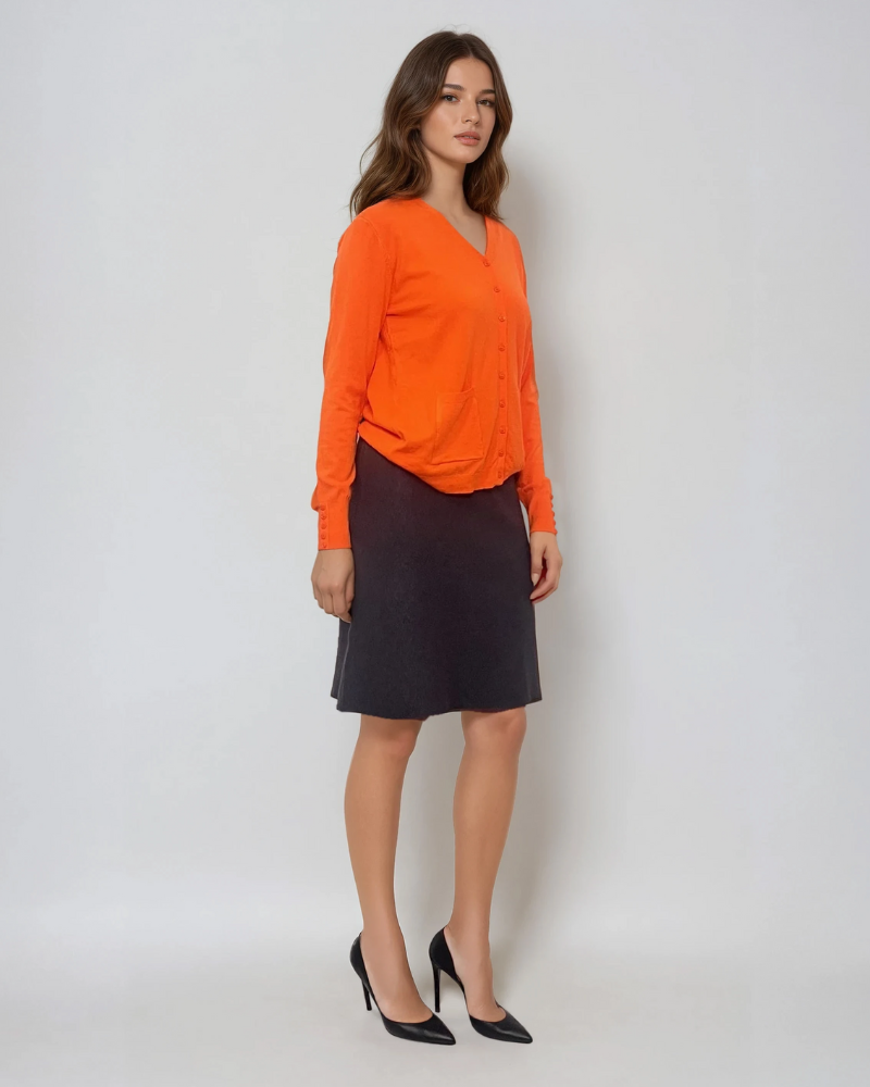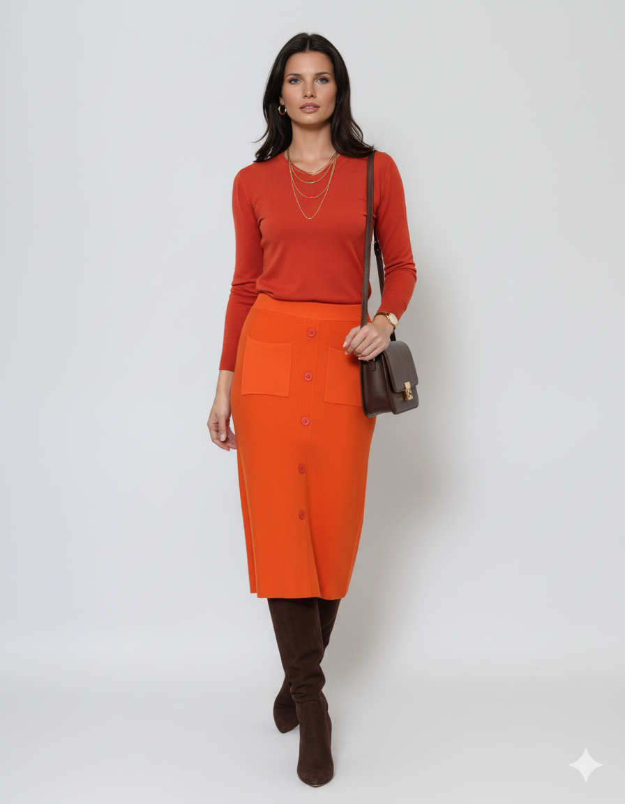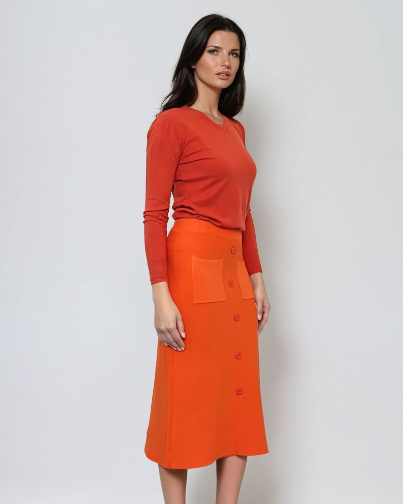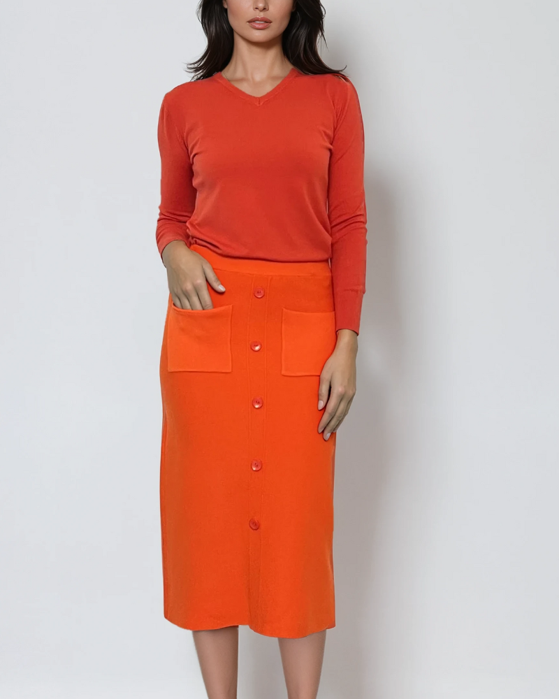 Fustă midi tricotată cu buzunare portocaliu