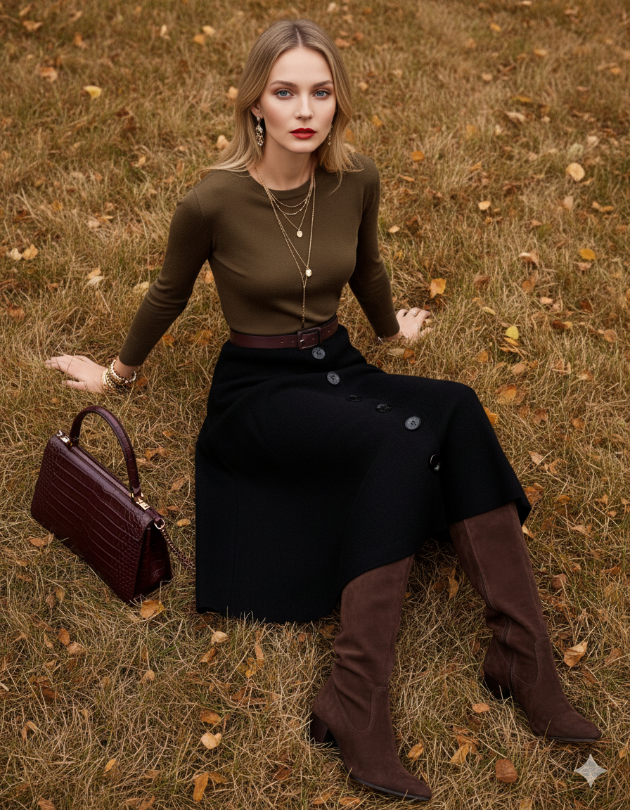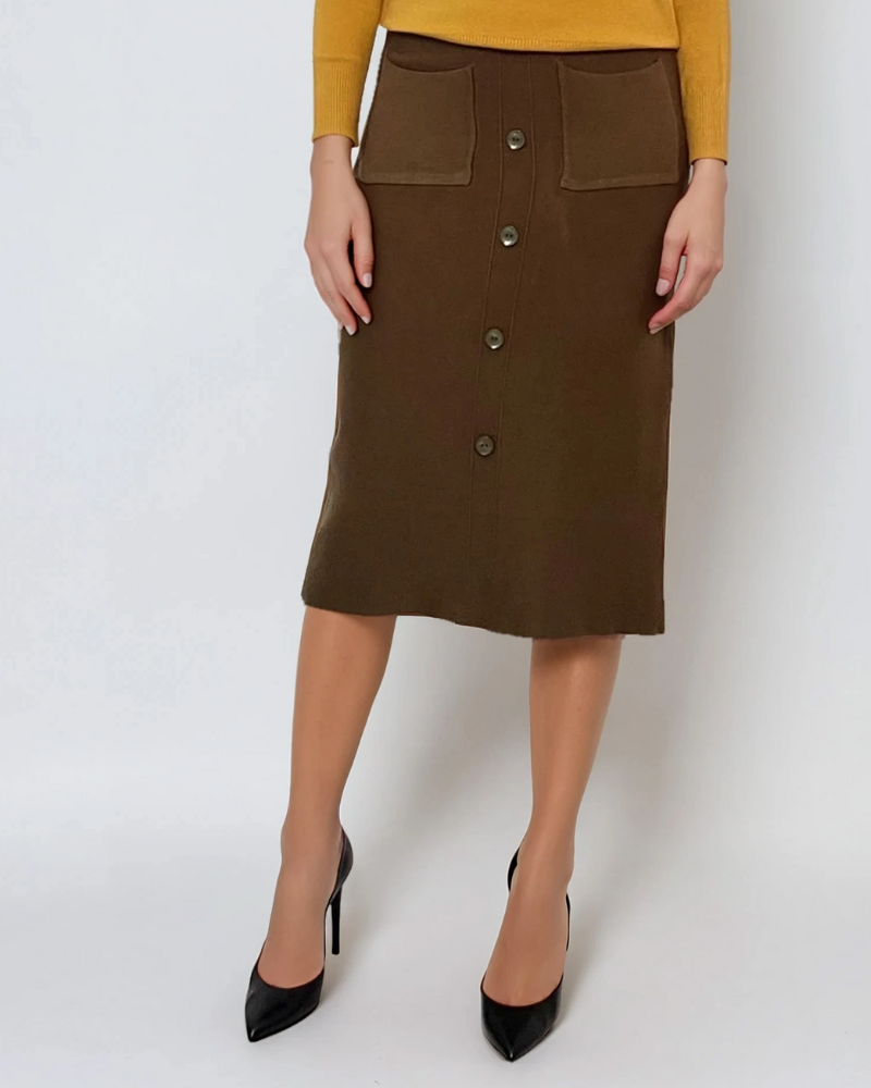 Fustă midi tricotată cu buzunare kaki