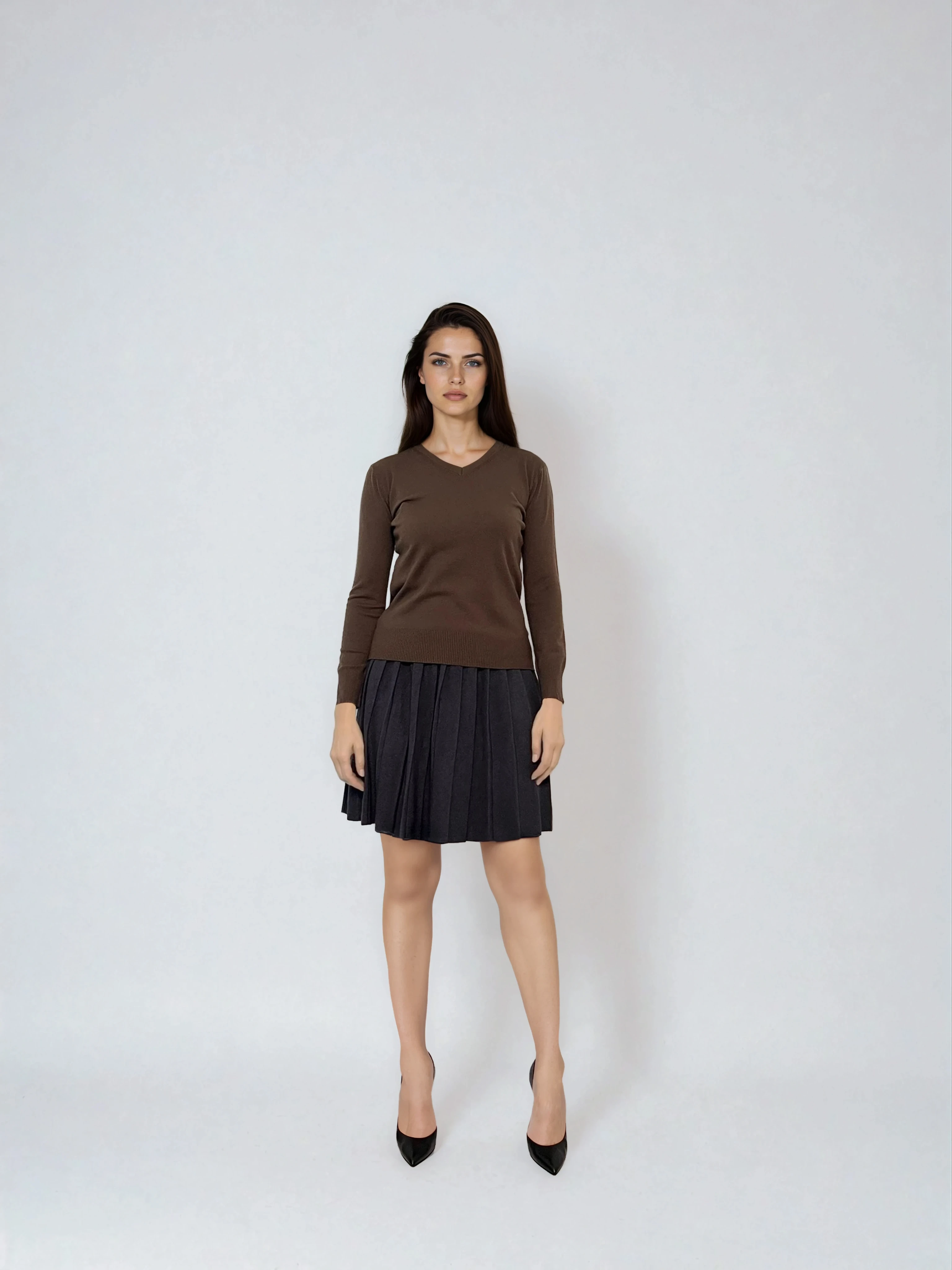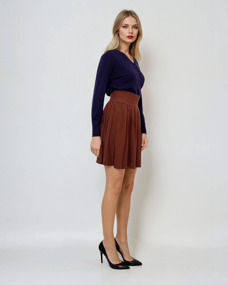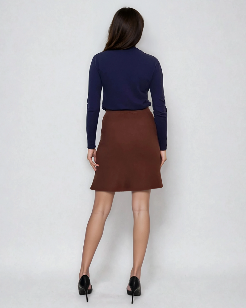 Fustă tricotată cloș maro