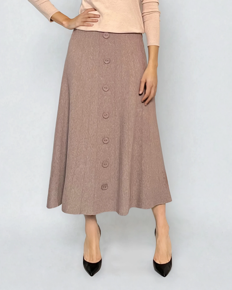 Fustă tricotată clos cu nasturi beige