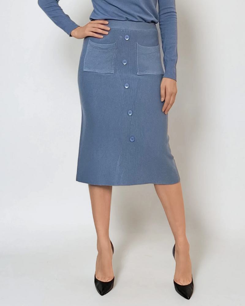 Fustă midi tricotată cu buzunare albastru