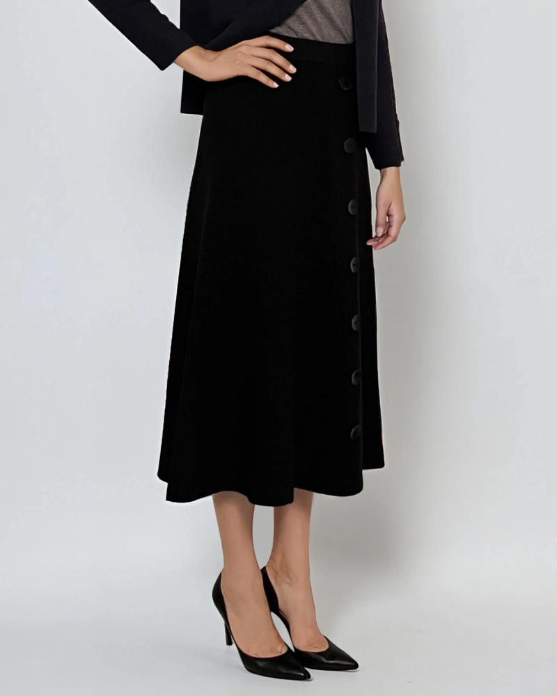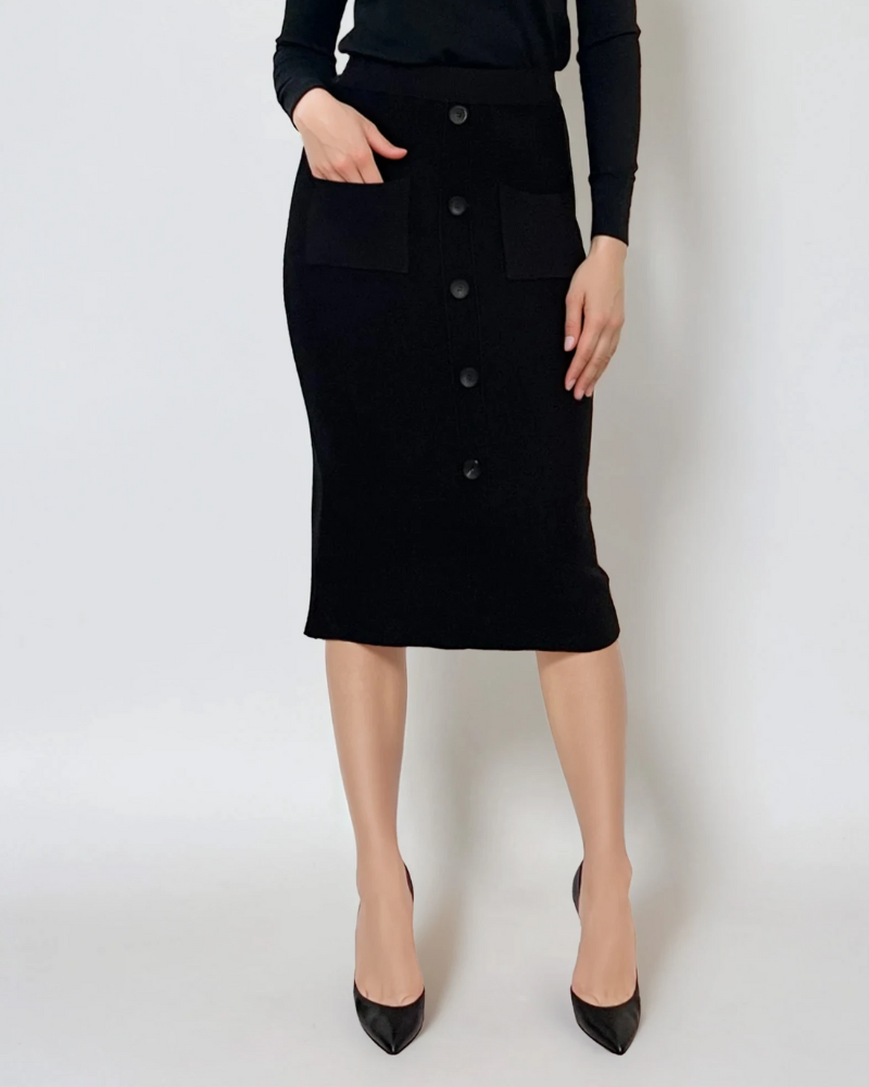 Fustă tricotată clos cu nasturi negru