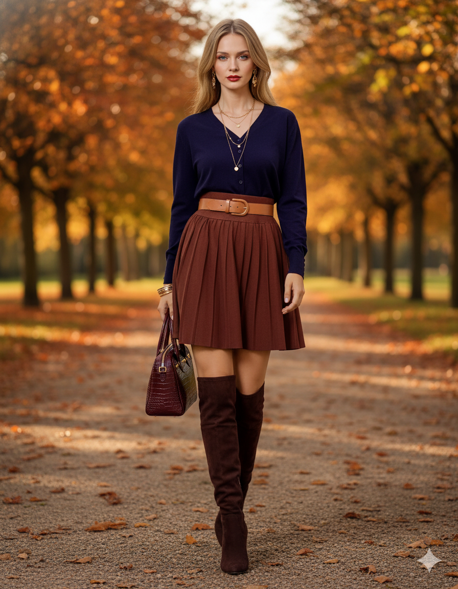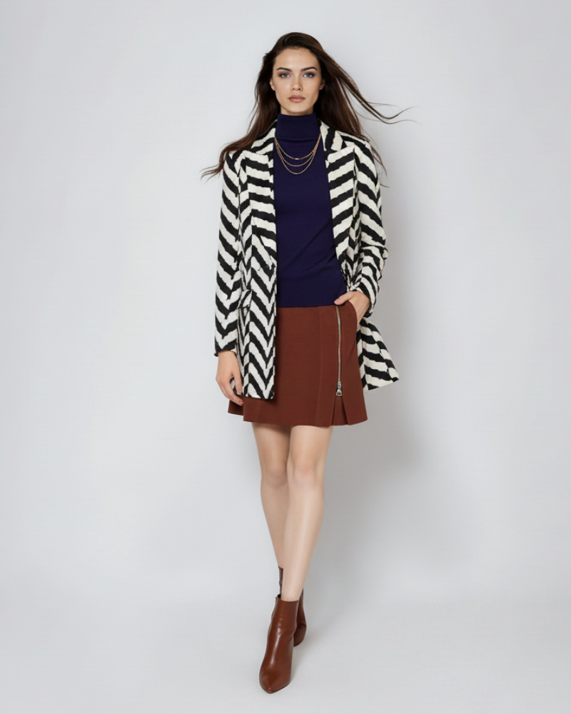 Fustă scurtă cu fermoar pe picior maro