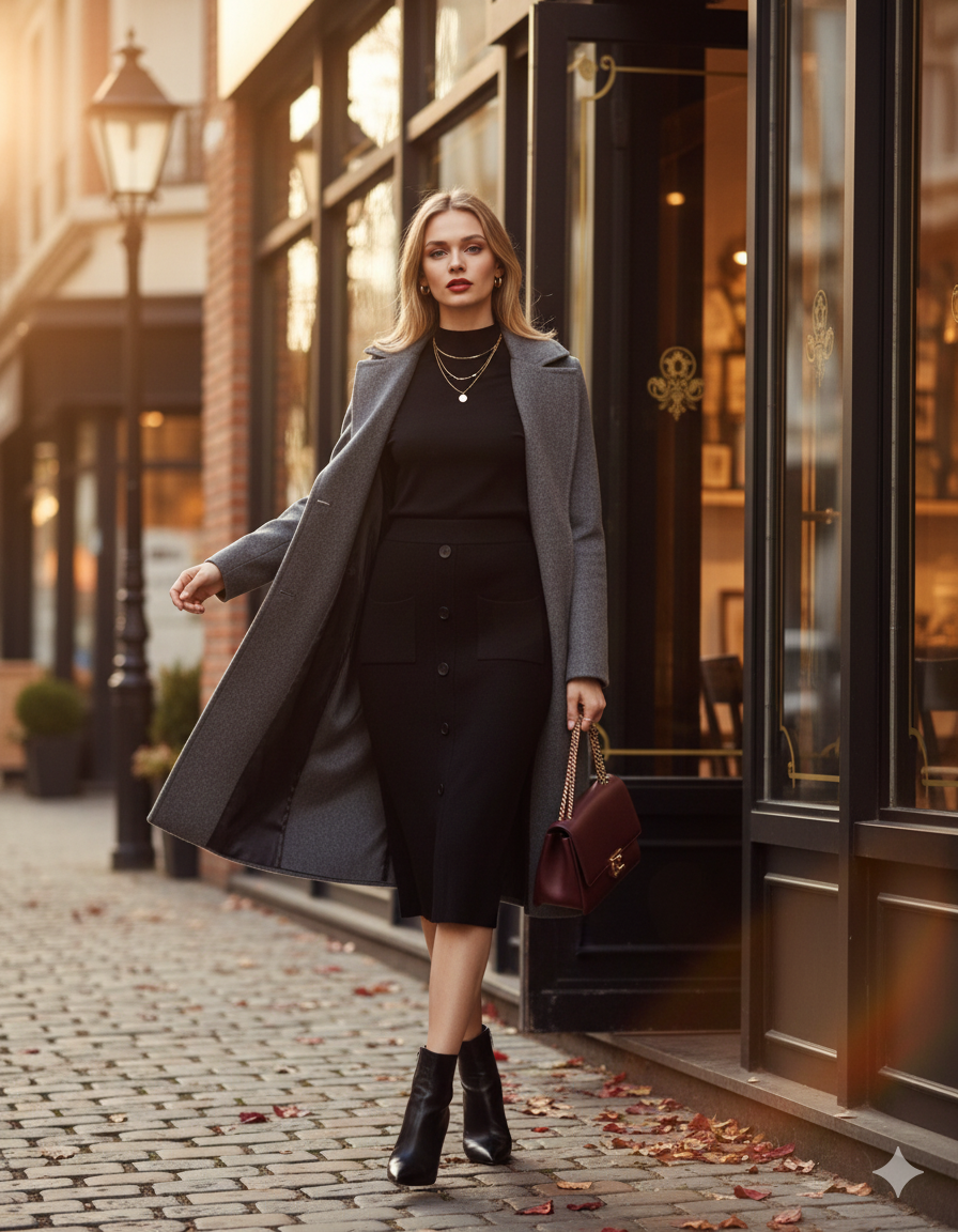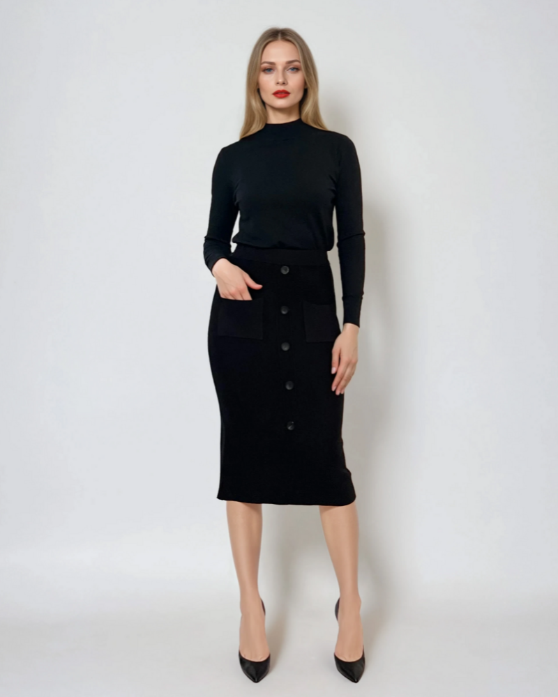 Fustă midi tricotată cu buzunare negru