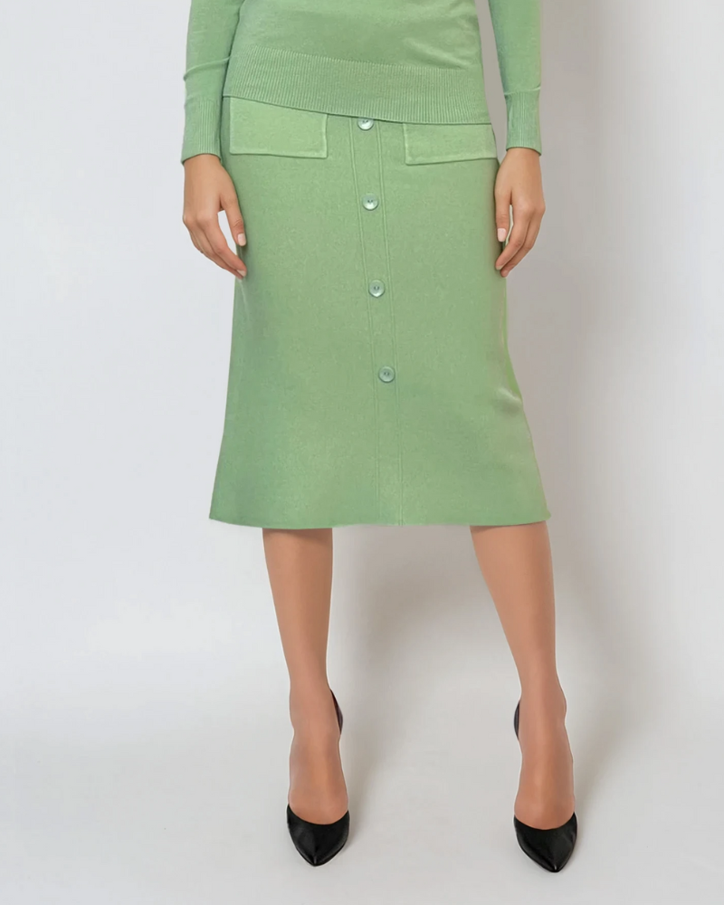 Fustă midi tricotată cu buzunare verde