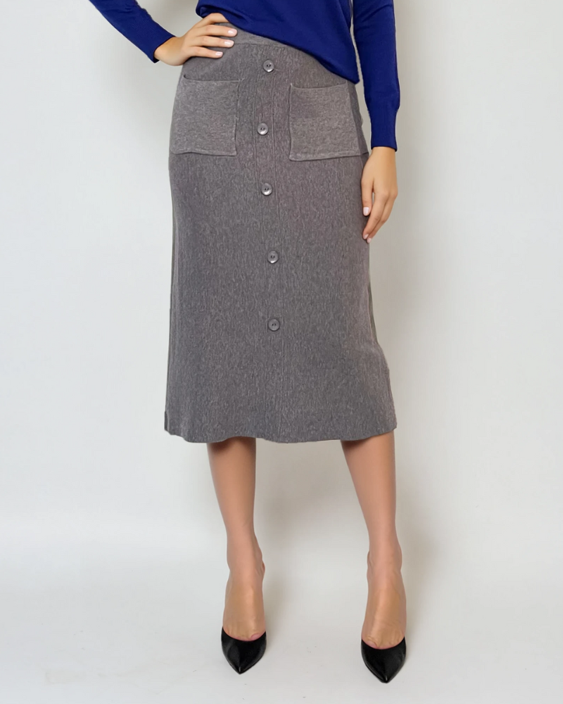 Fustă midi tricotată cu buzunare gri