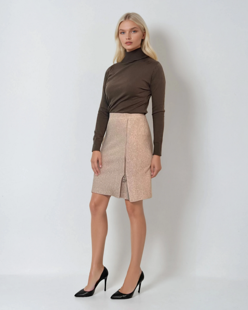 Fustă scurtă cu fermoar pe picior beige