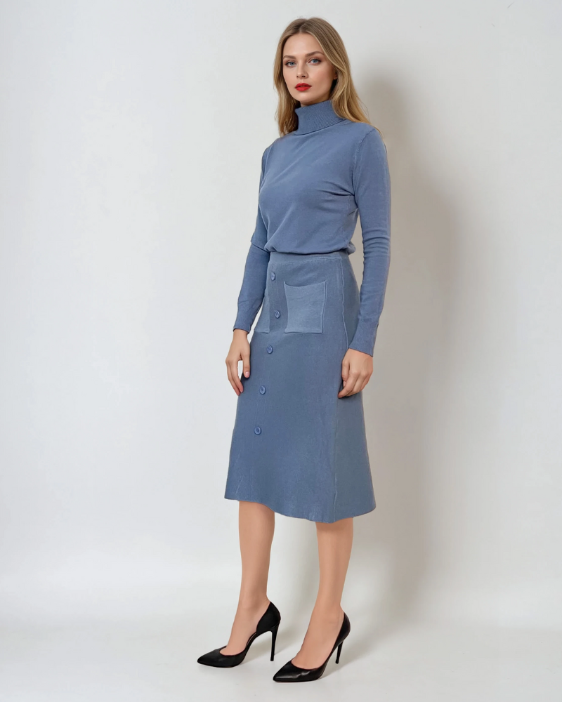 Fustă midi tricotată cu buzunare aqua