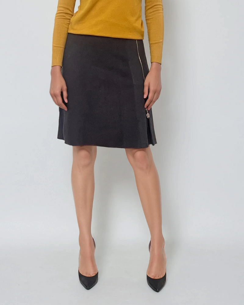 Fustă tricotată clos cu nasturi gri