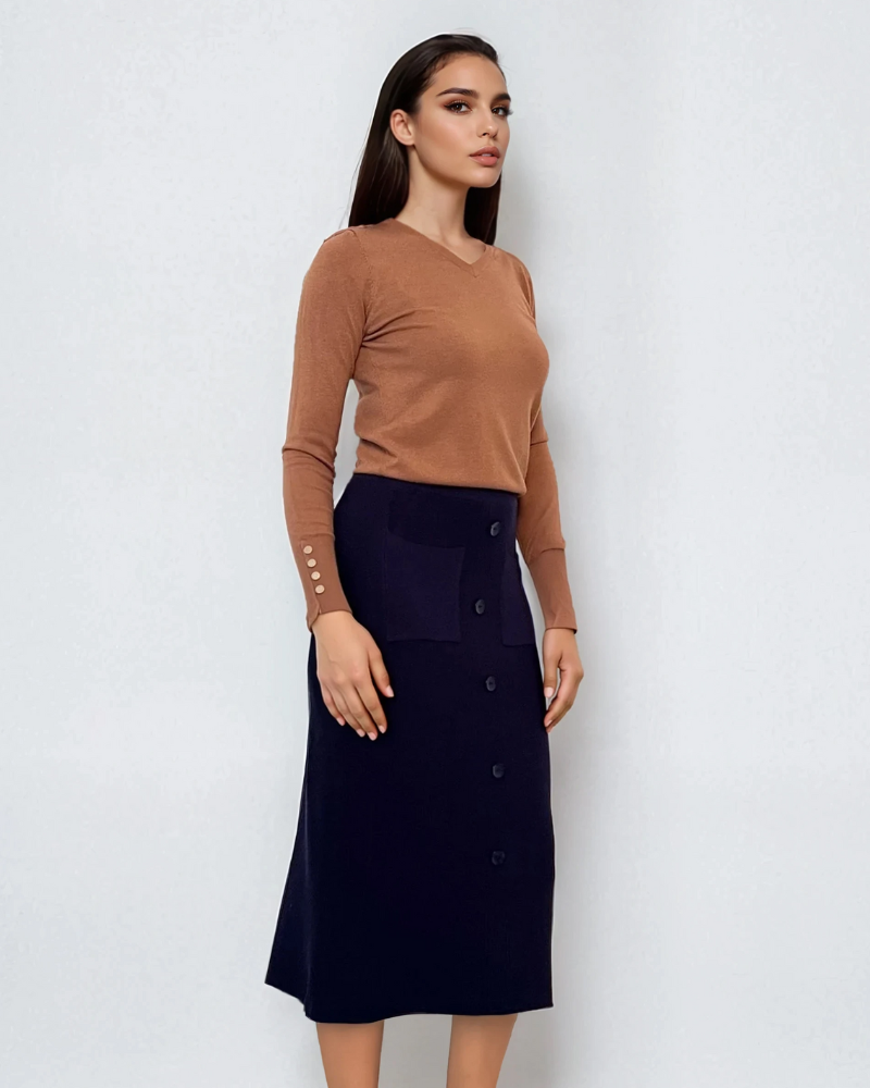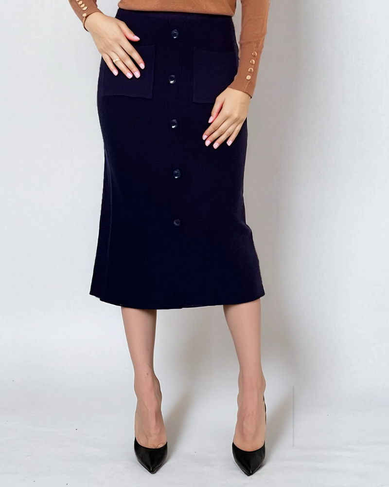 Fustă midi tricotată cu buzunare bleumarin