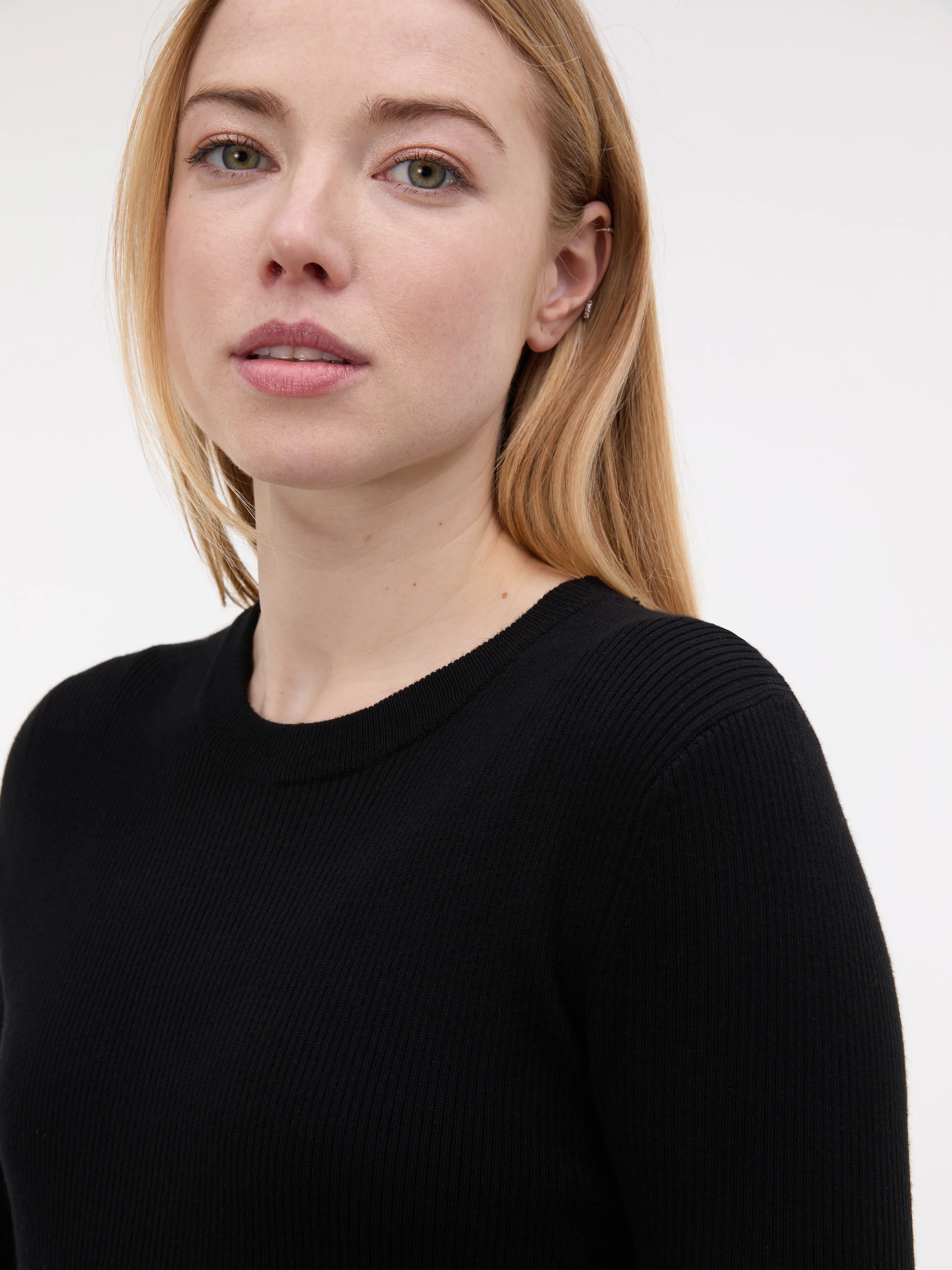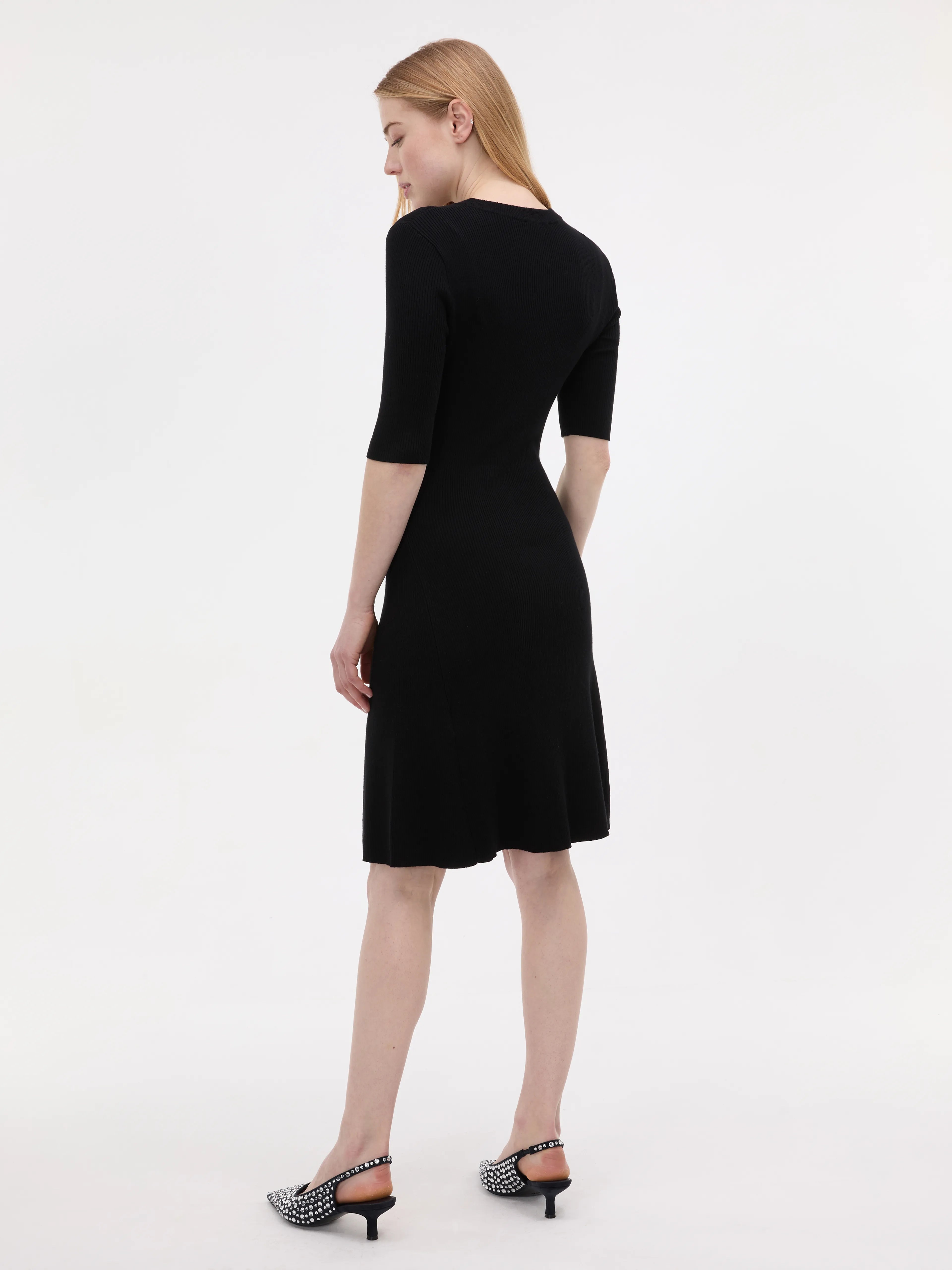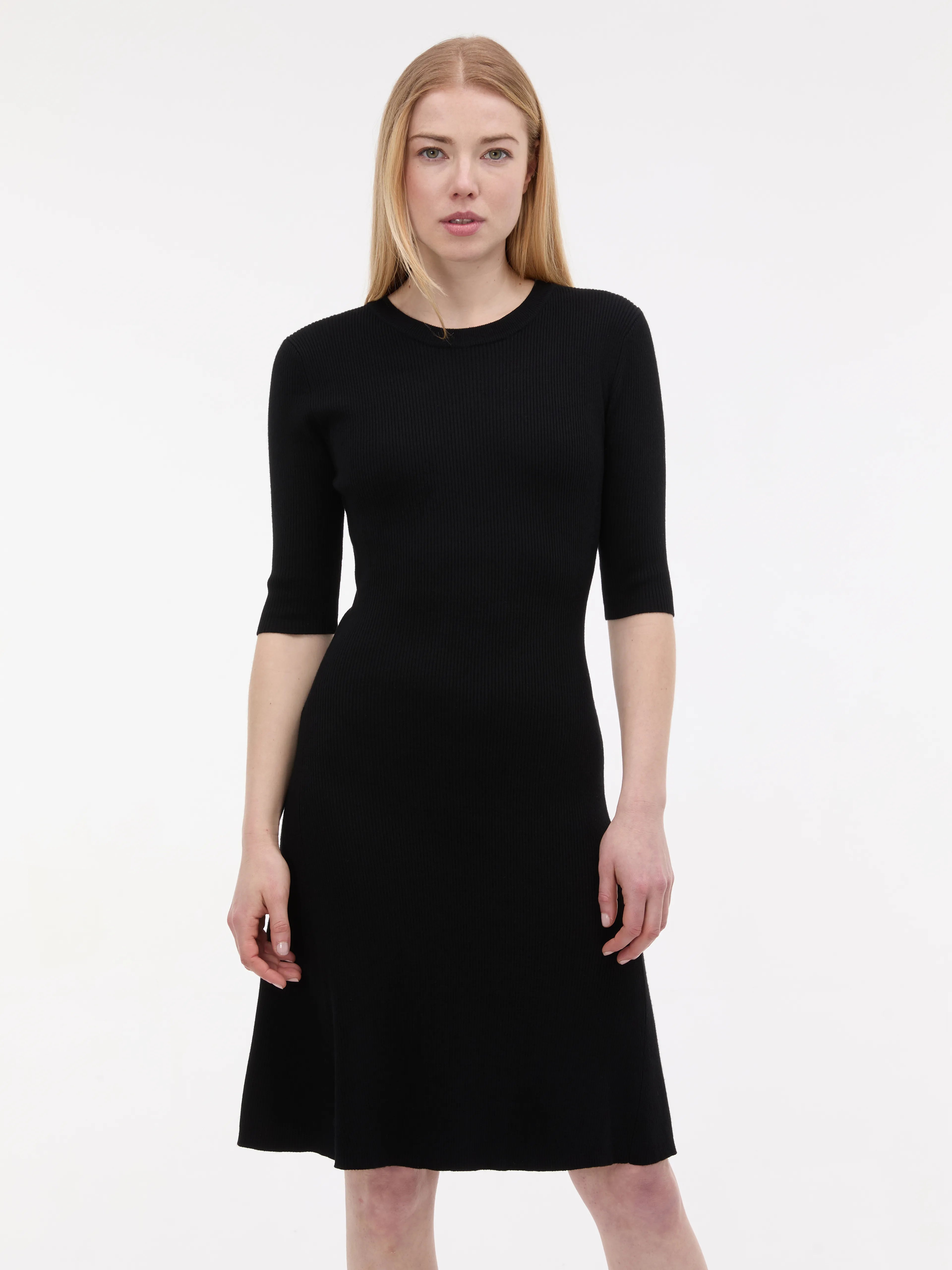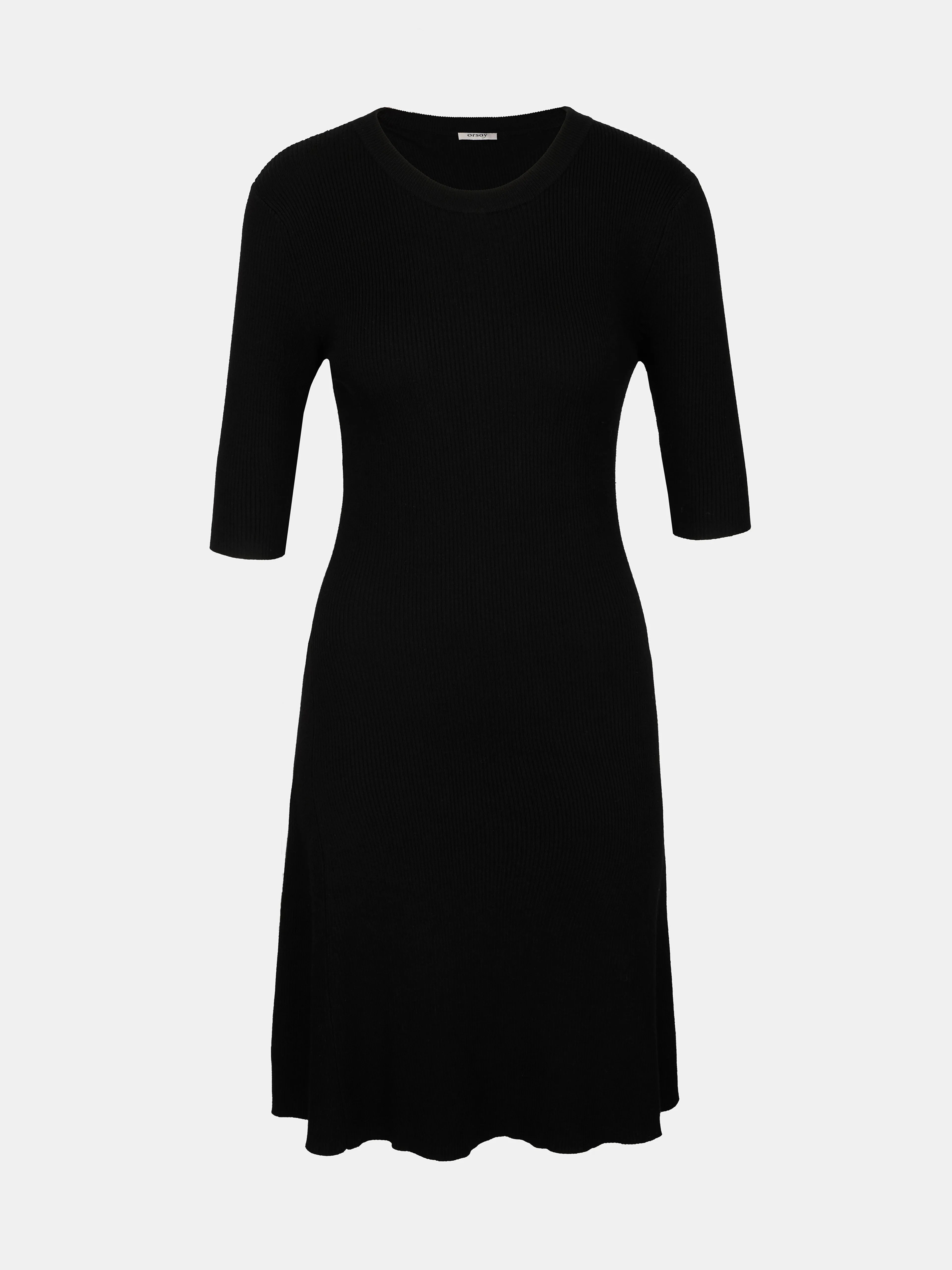 Rochie tricotată în formă de A cu mâneci trei sferturi neagră ORSAY negru