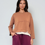 Bluză cu mânecă lungă cu inserție albă grej, cu design aparent suprapus și nuanță neutră ușor de asortat. Ideală pentru ținute casual-sport, oferă căldură și libertate de mișcare. Contrastul alb de la talie pune în evidență linia corpului cu subtilitate.