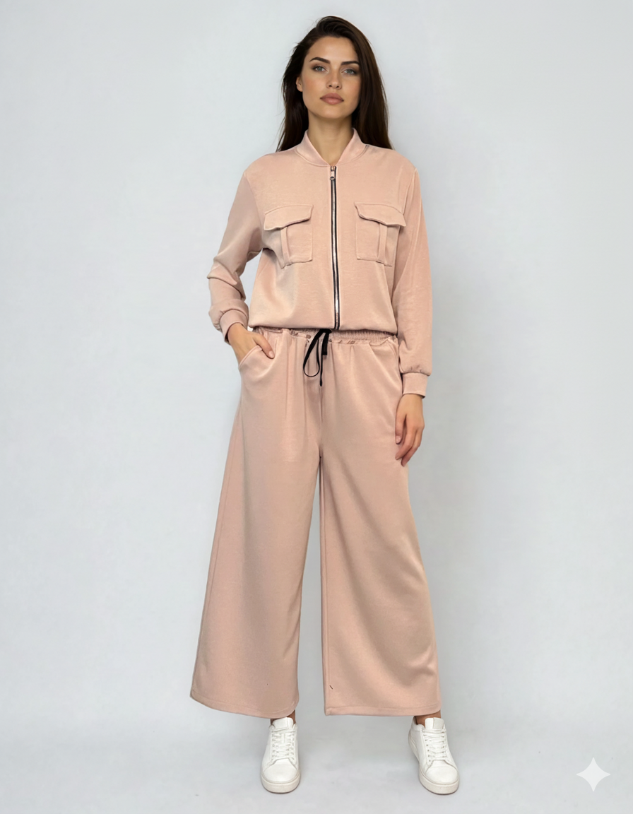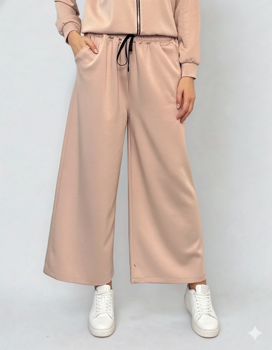 Fustă pantalon crem cu buzunare și șnur, perfectă pentru un look lejer și elegant. Materialul fin și croiala comodă asigură libertate de mișcare, iar designul practic face această piesă indispensabilă în garderobă.