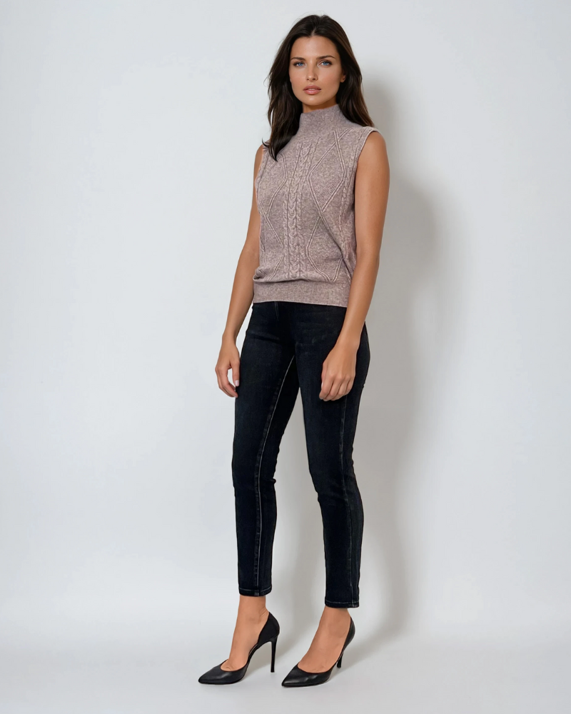 Vestă pe gât cu nasturi decorativi gri, un articol esențial pentru garderoba sezonului rece. Materialul moale și croiala simplă cu detalii prețioase în spate transformă această vestă într-o alegere ideală pentru birou sau întâlniri informale cu stil.