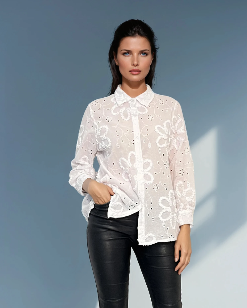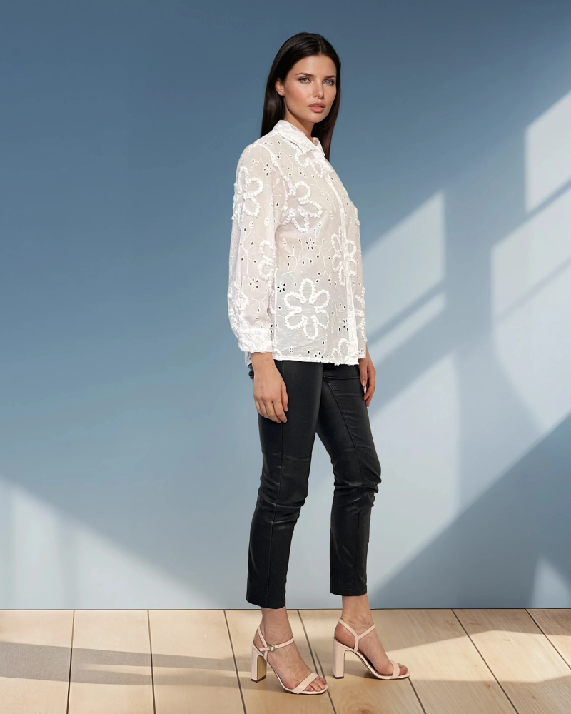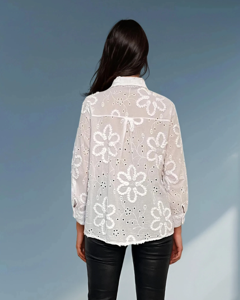 Bluză cu broderie în relief alb