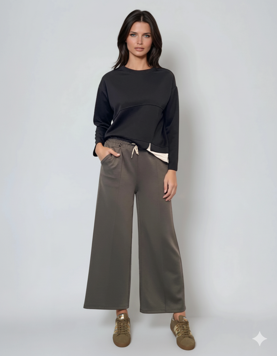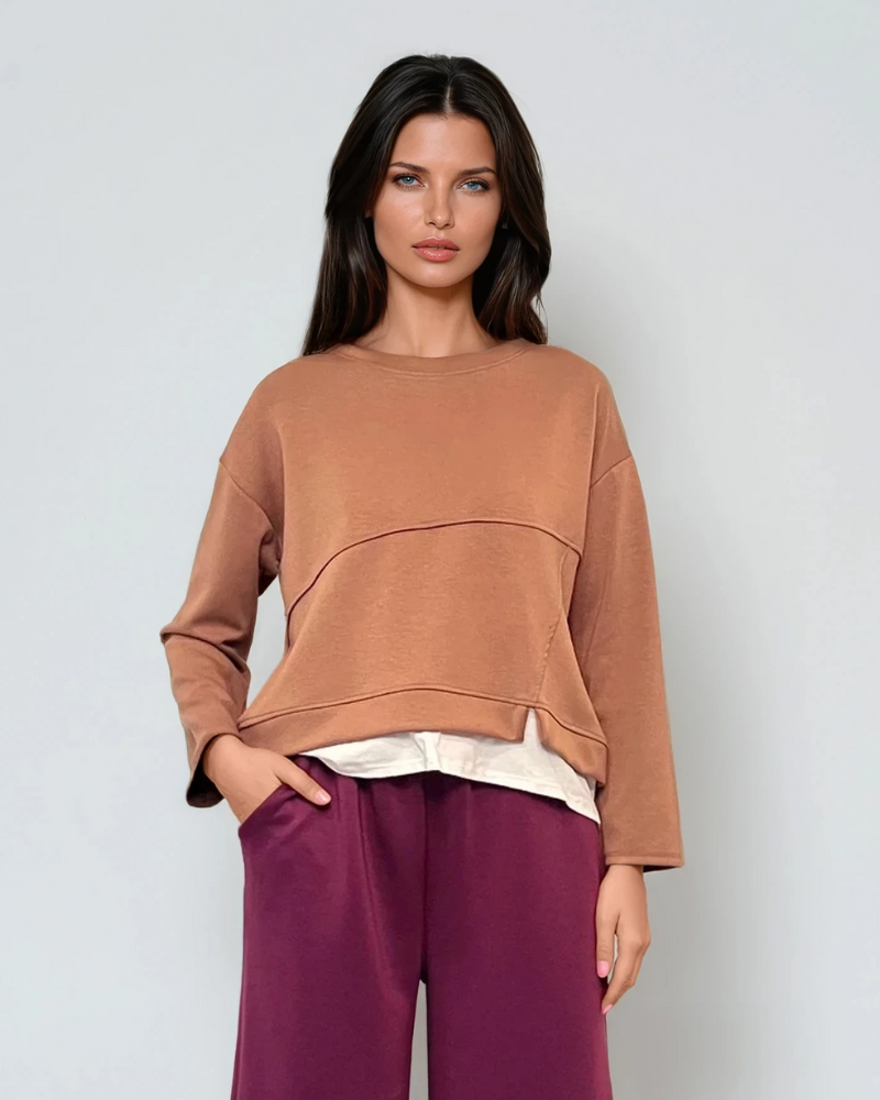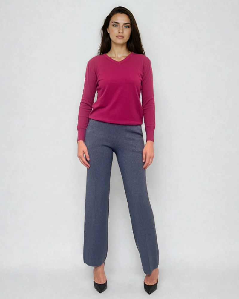 Pulover cu mânecă scurtă și bordură contrast bleumarin