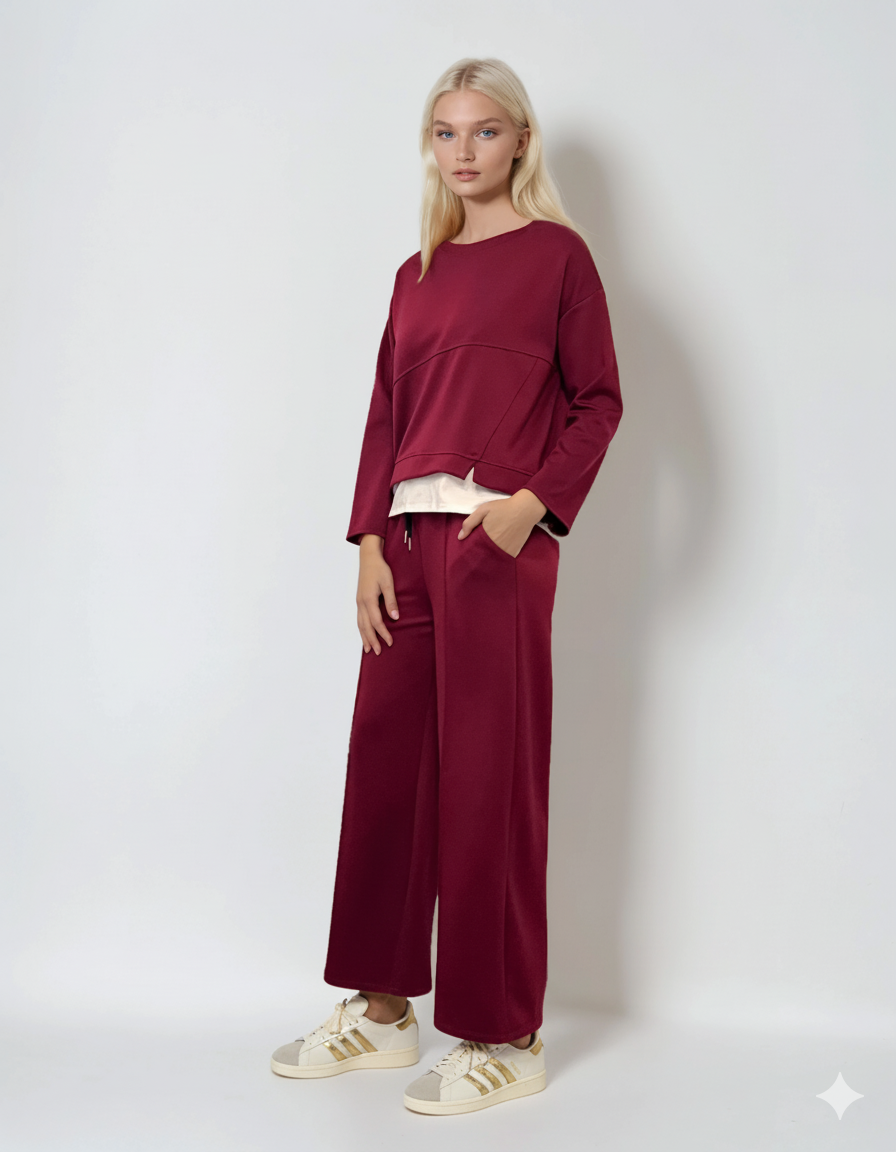 Pulover cu mânecă scurtă, guler cămașă și nasturi grena