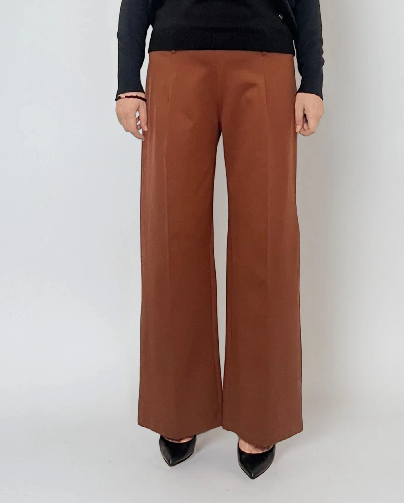 Pantaloni lungi cu pense și buzunare maro