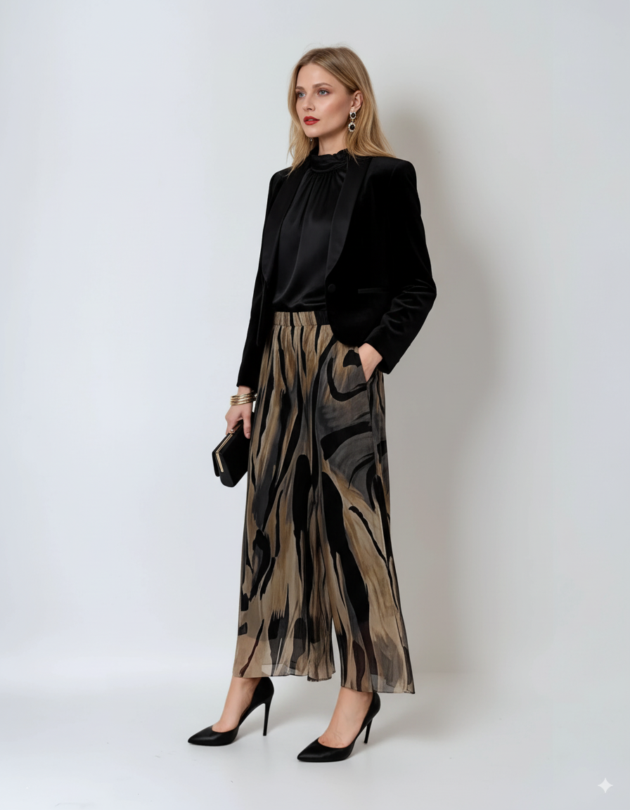 Fustă pantaloni vaporoasă din mătase beige