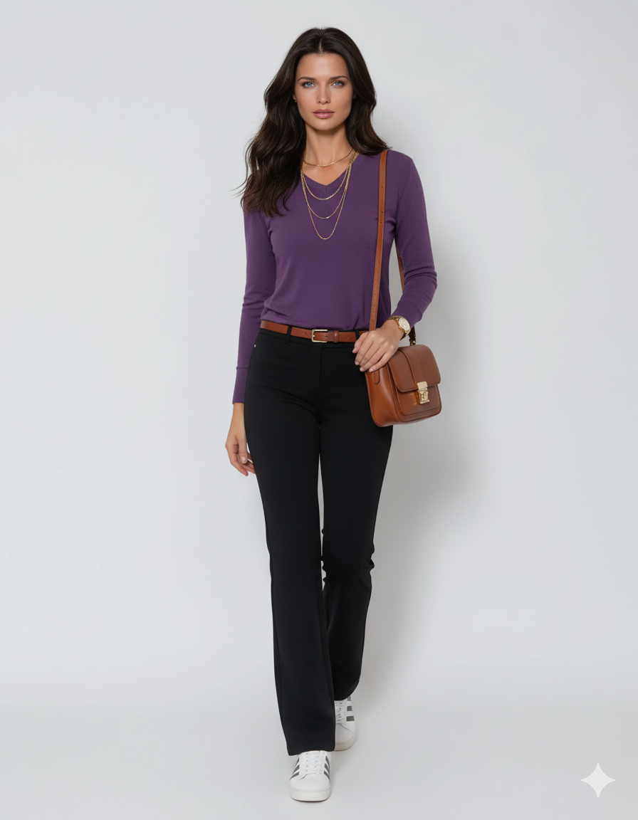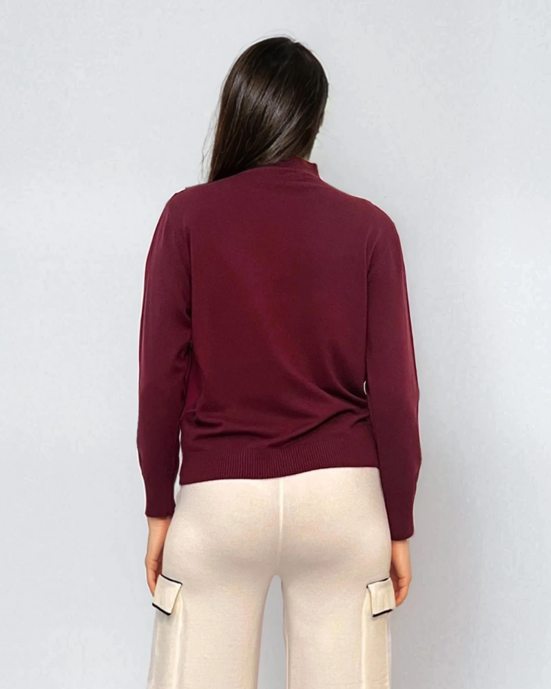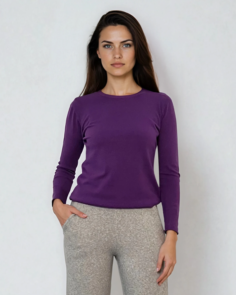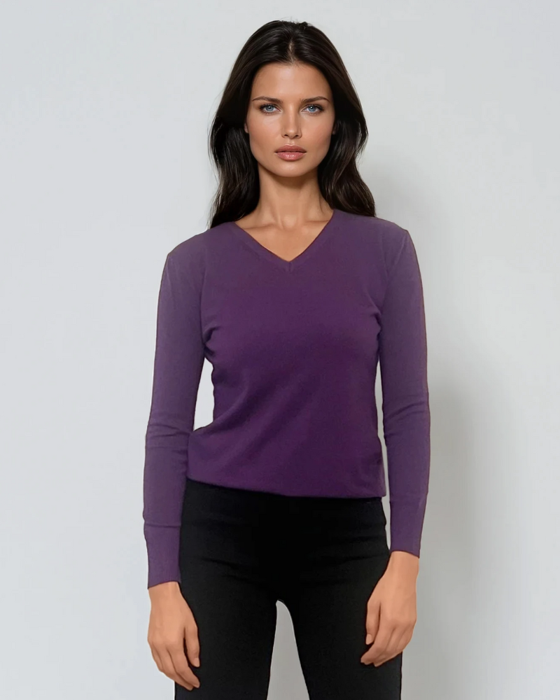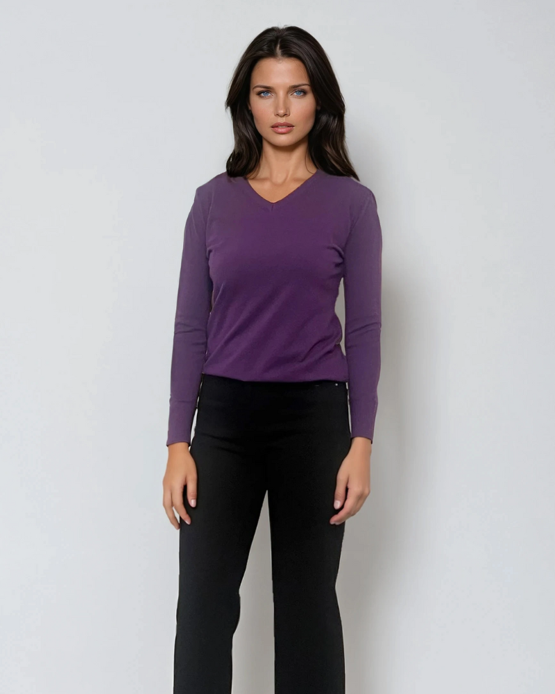 Pulover cu decolteu în V moale si confortabil mov-pruna
