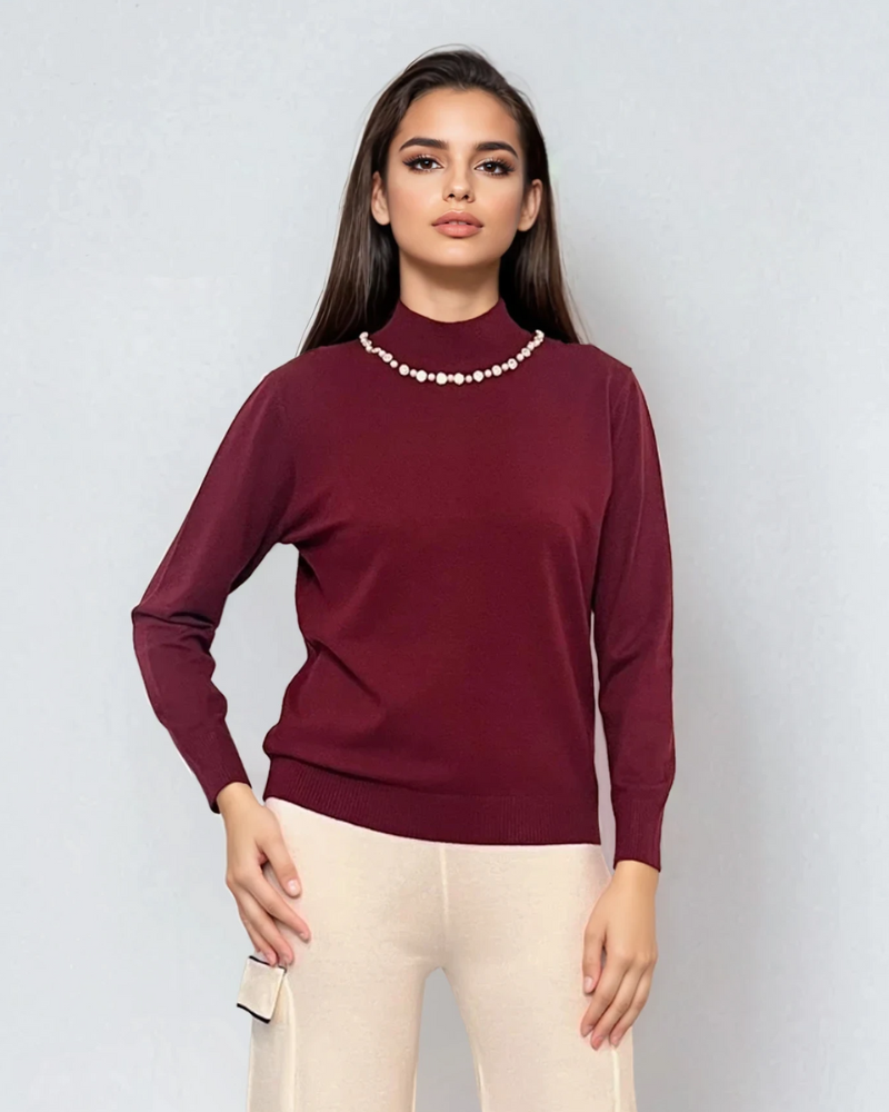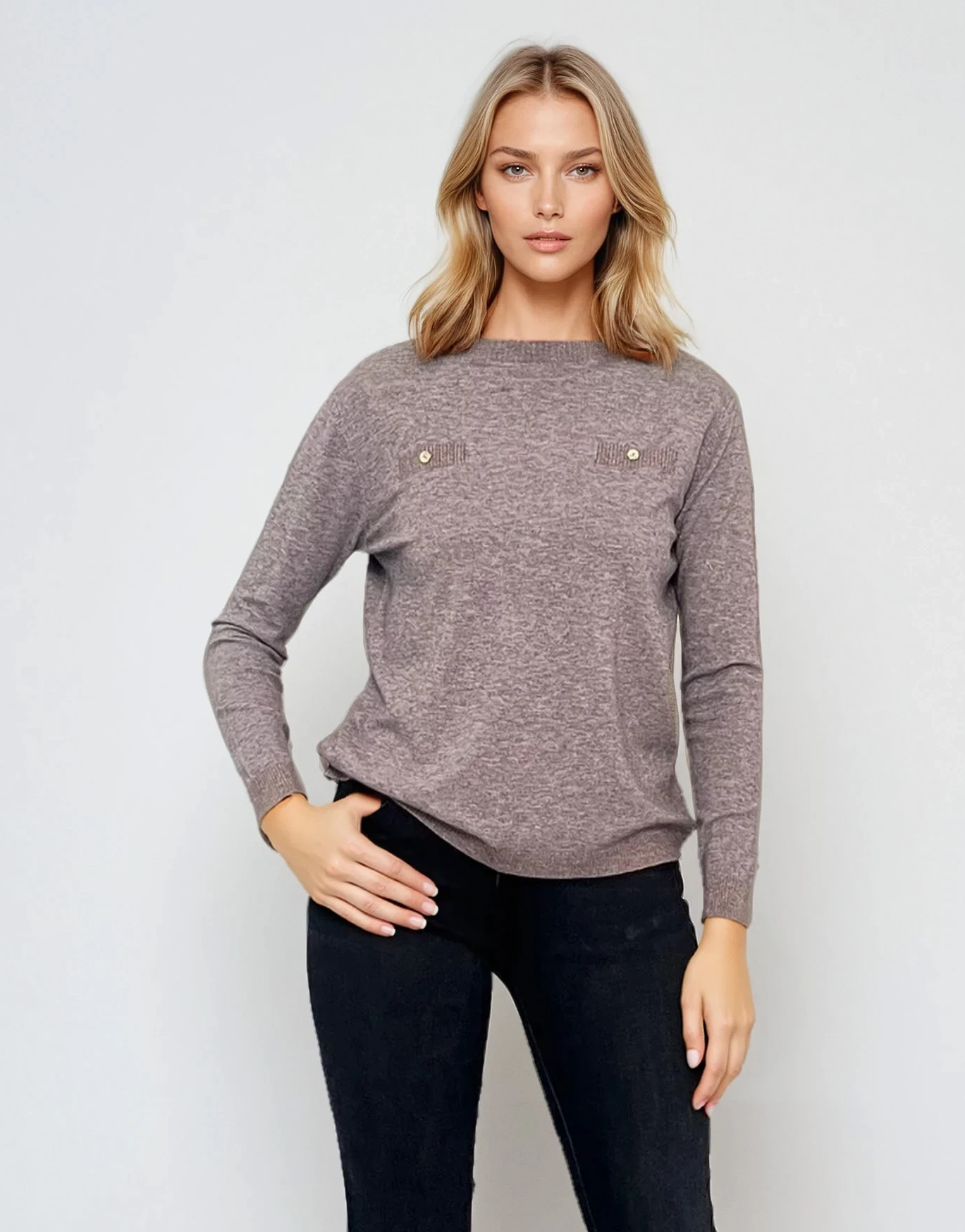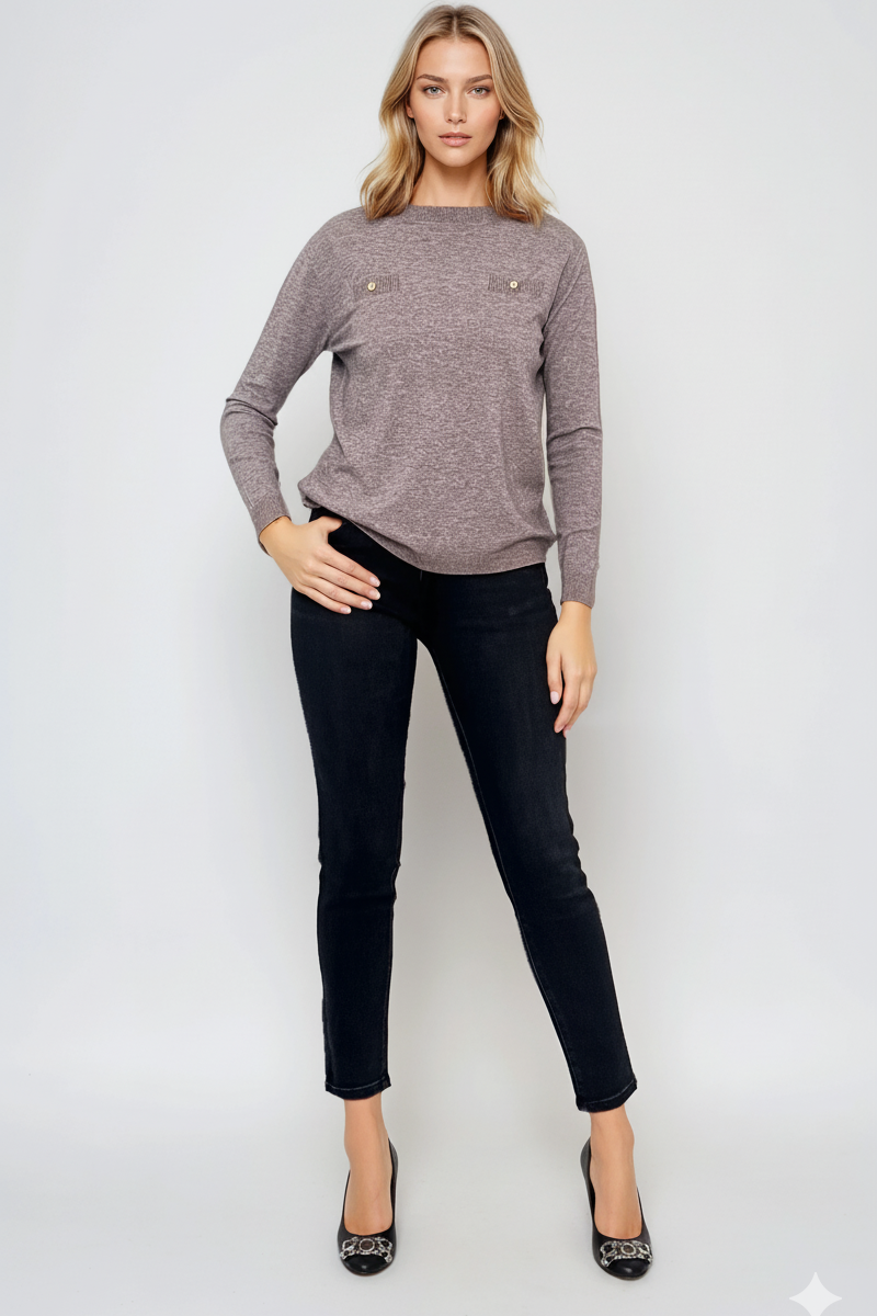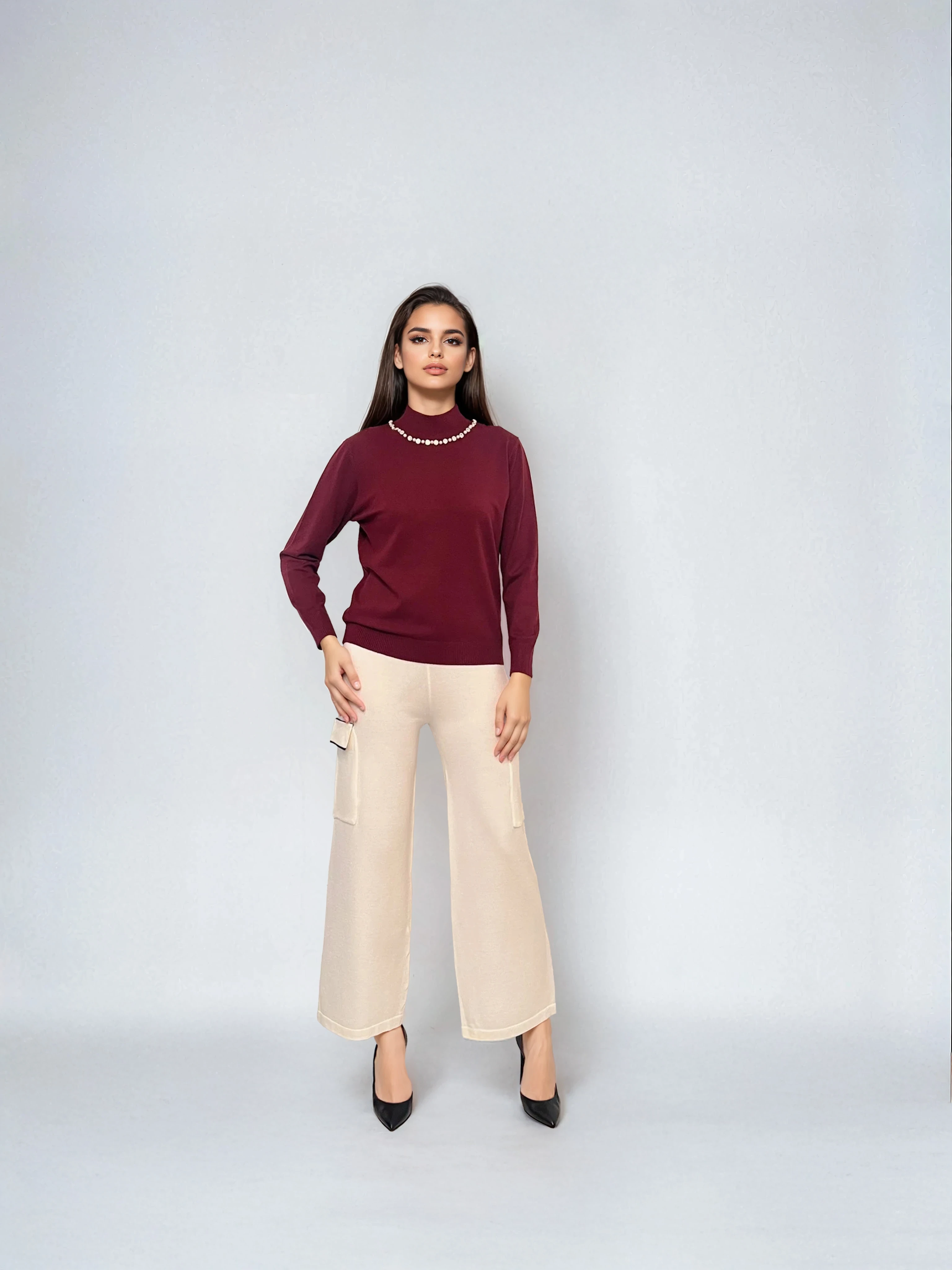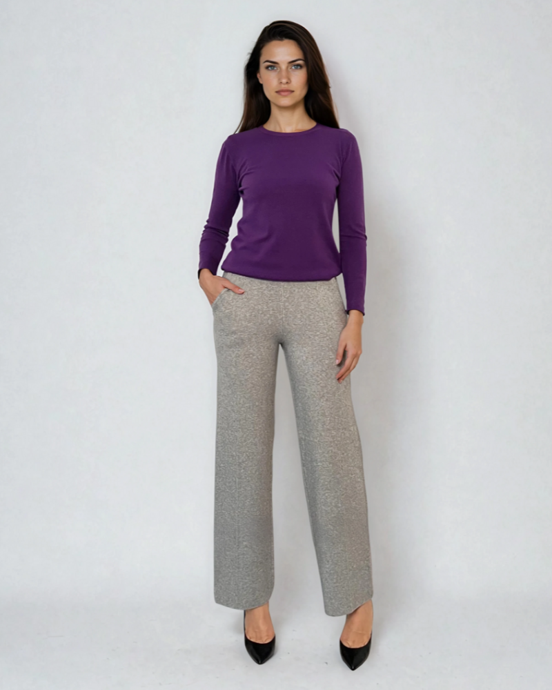 Pulover cu decolteu în V moale si confortabil mov-pruna
