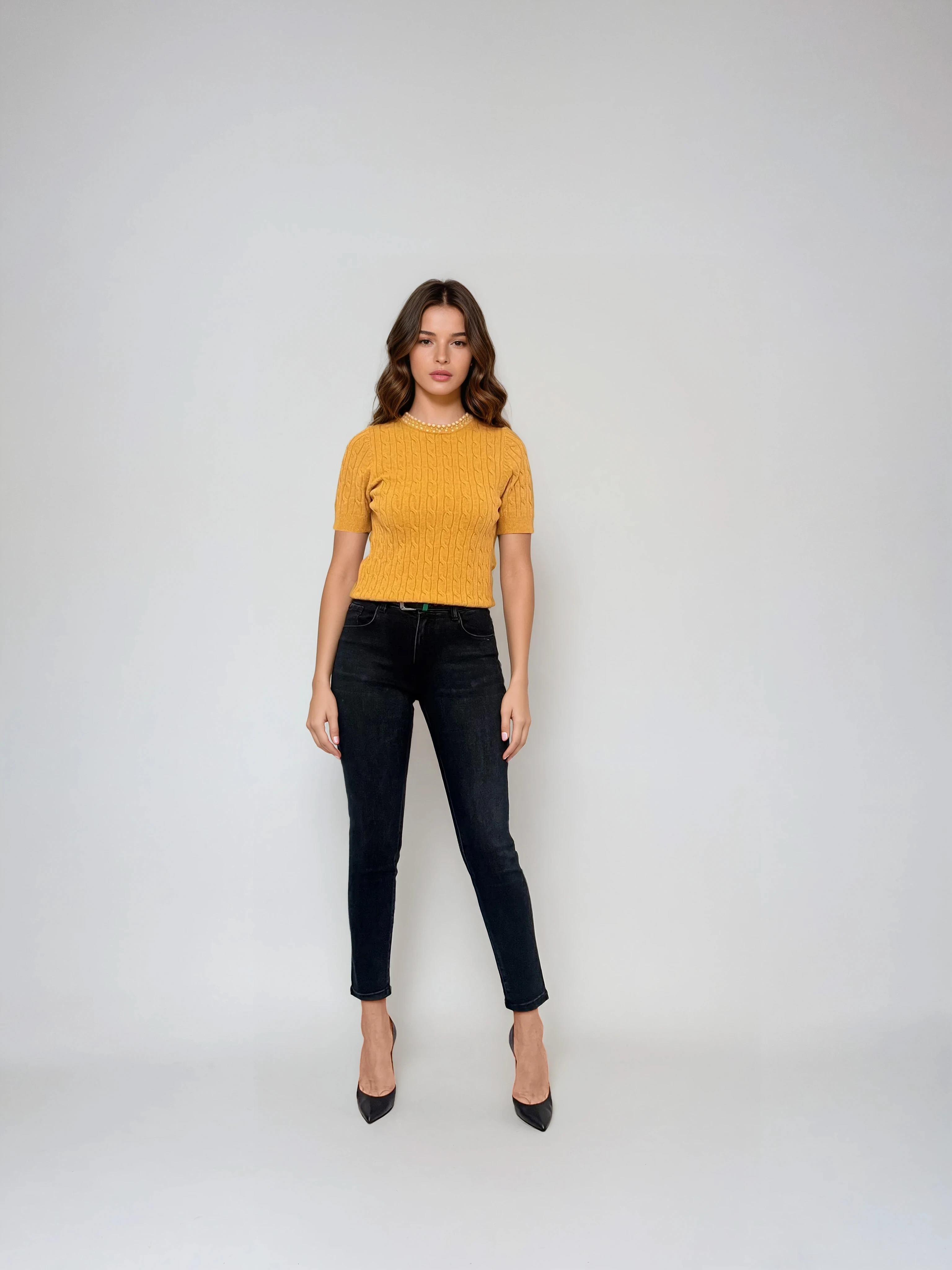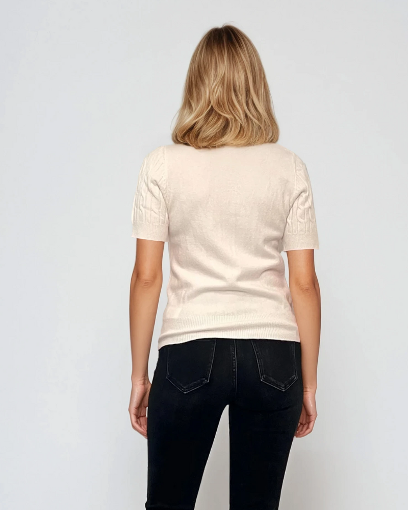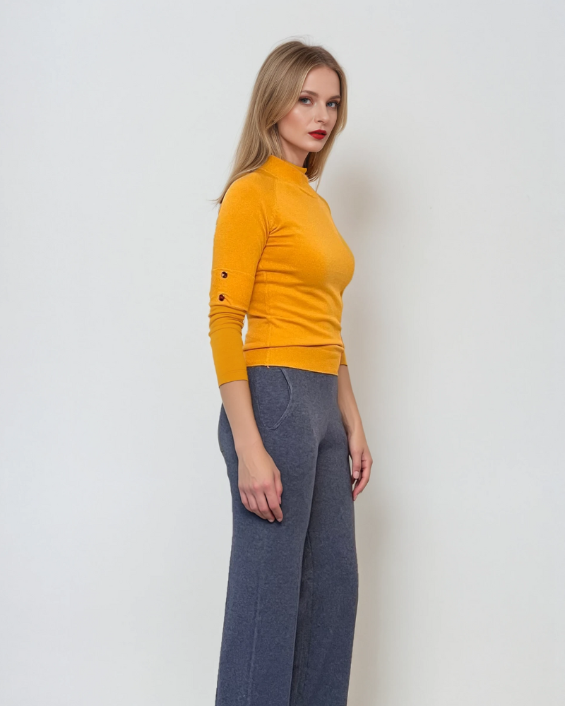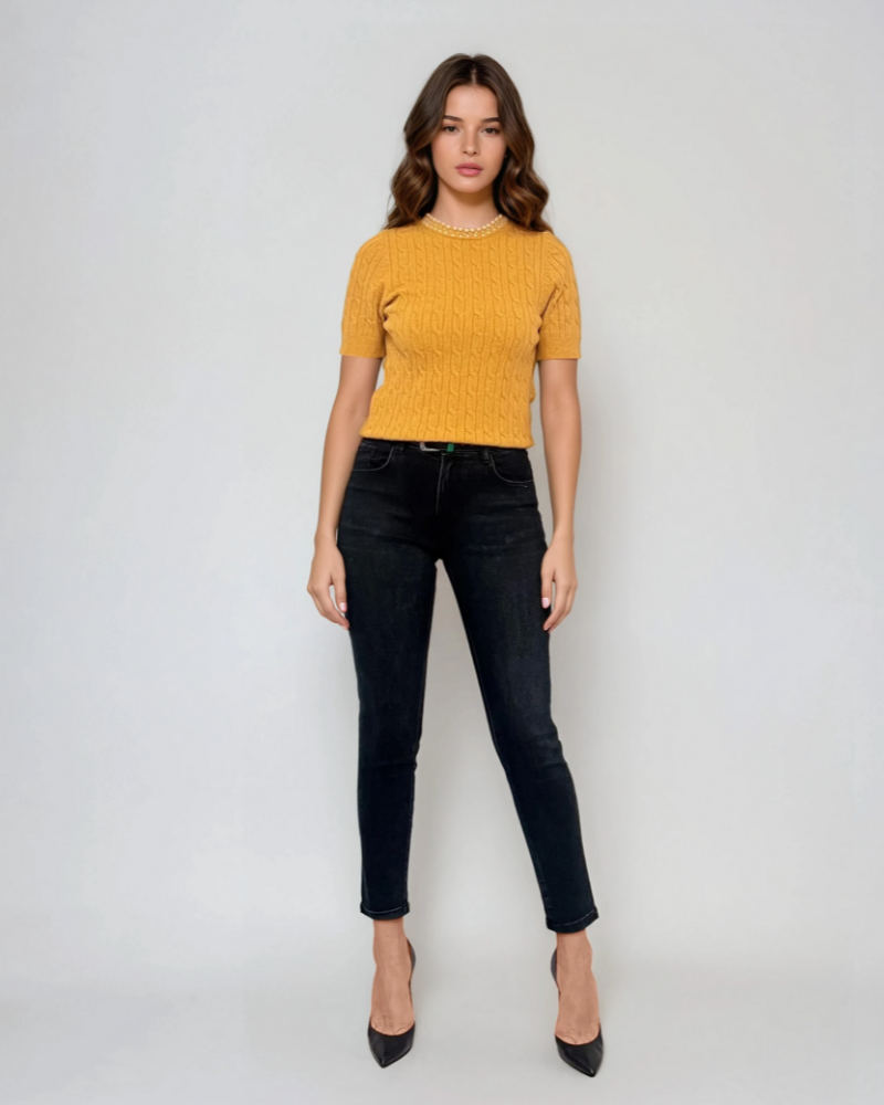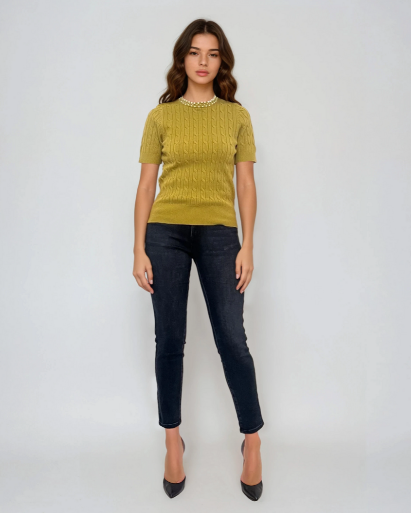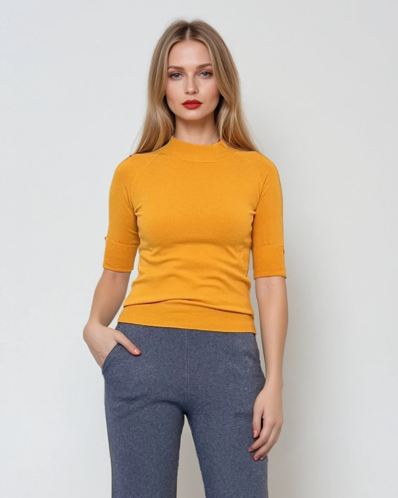 Pulover cu mânecă scurtă ?i nasturi aurii galben