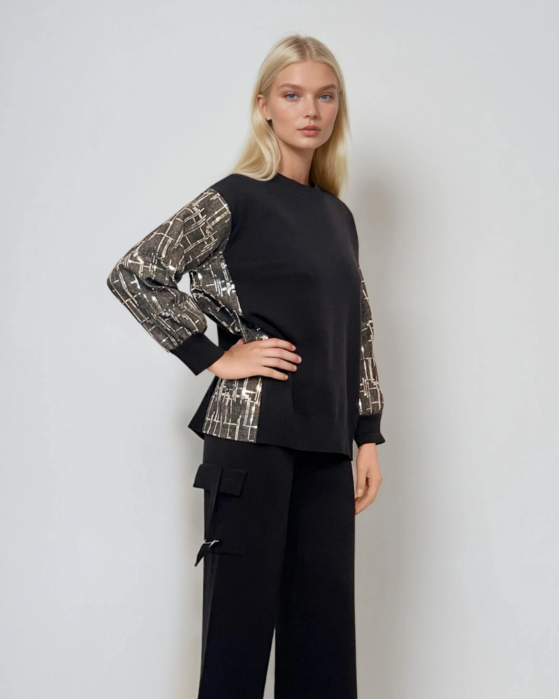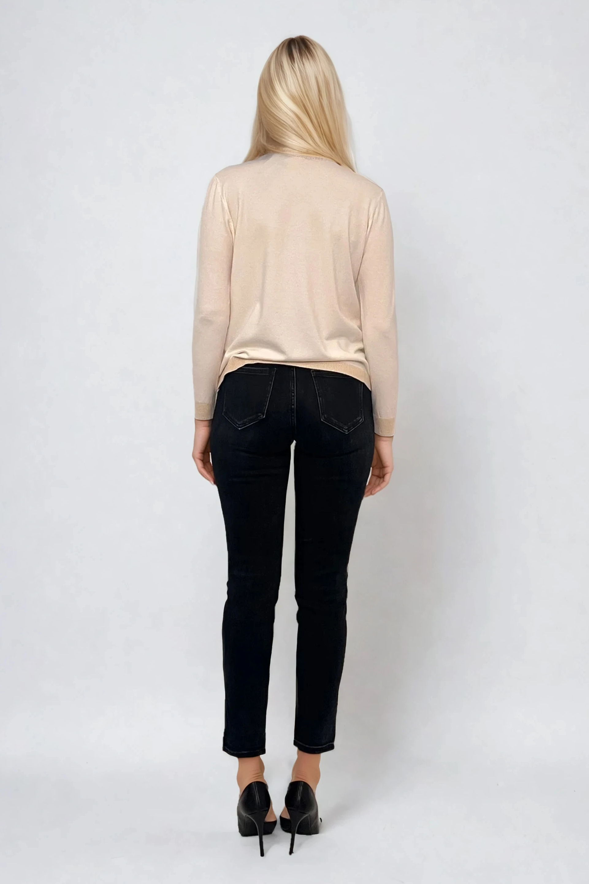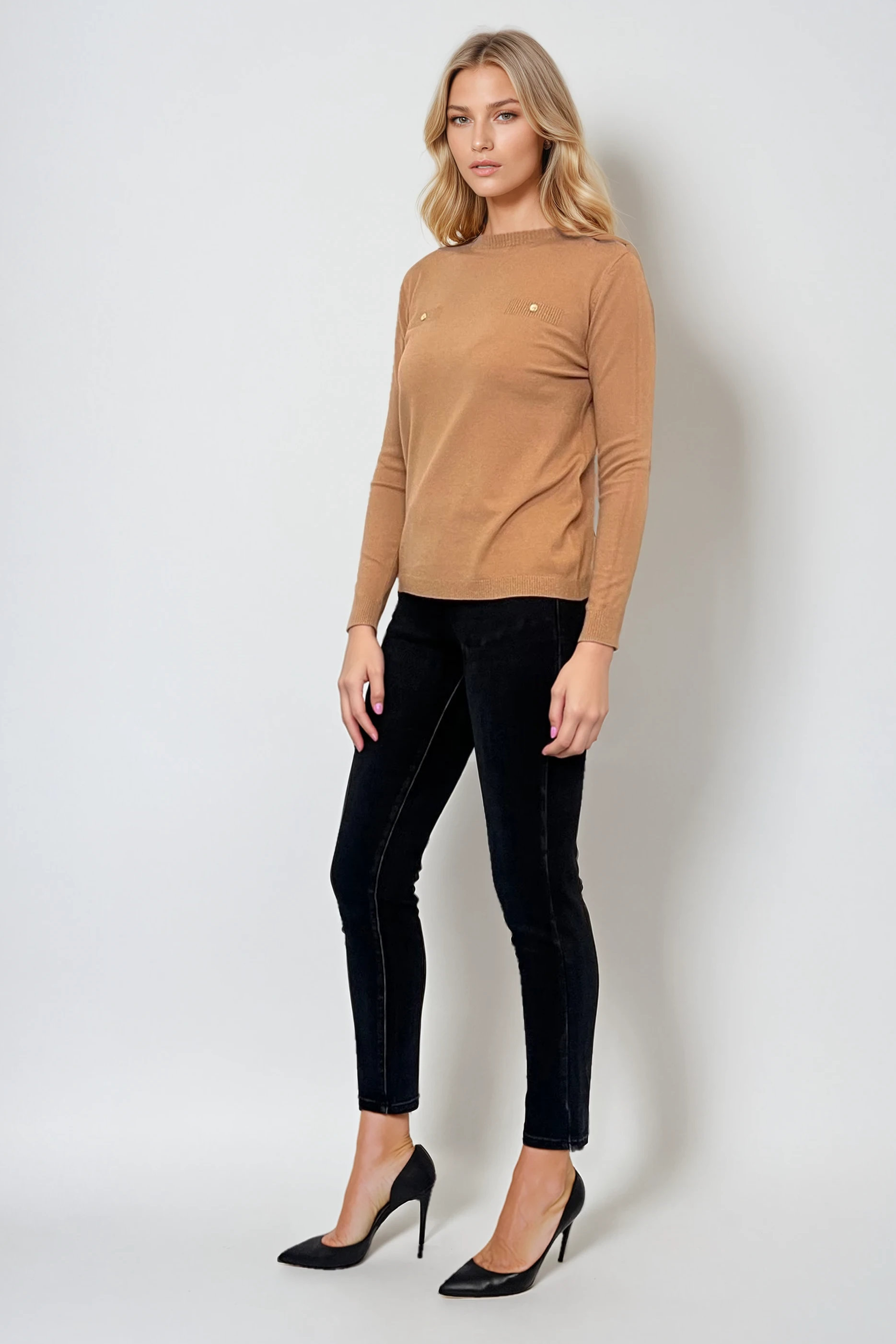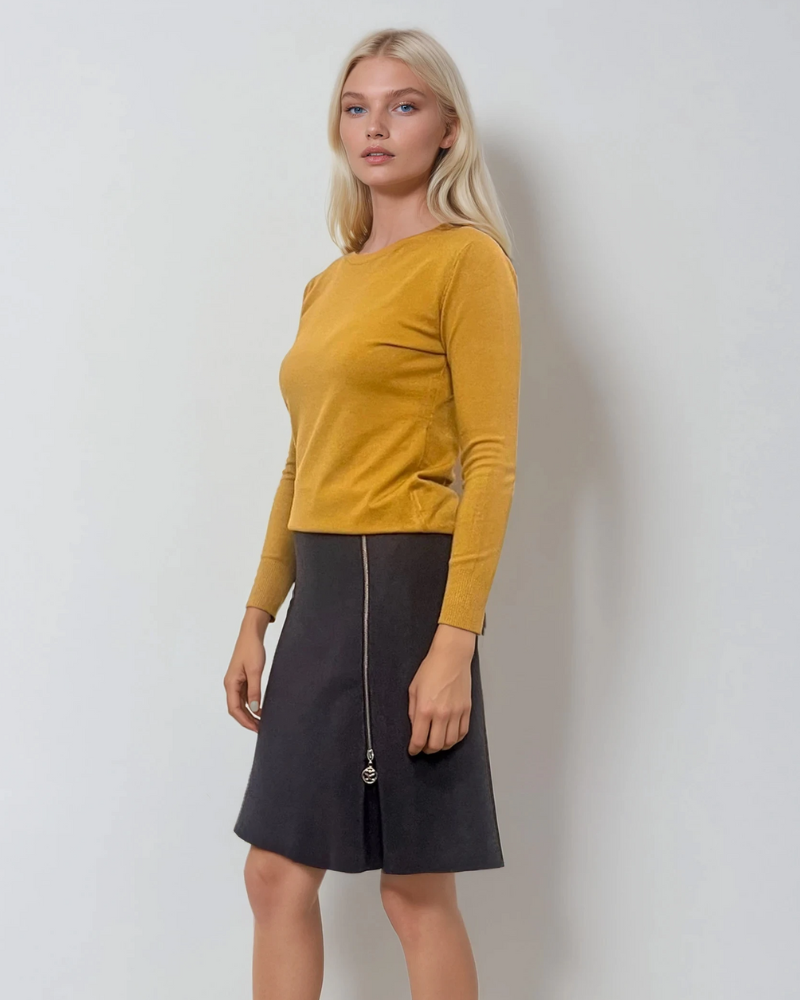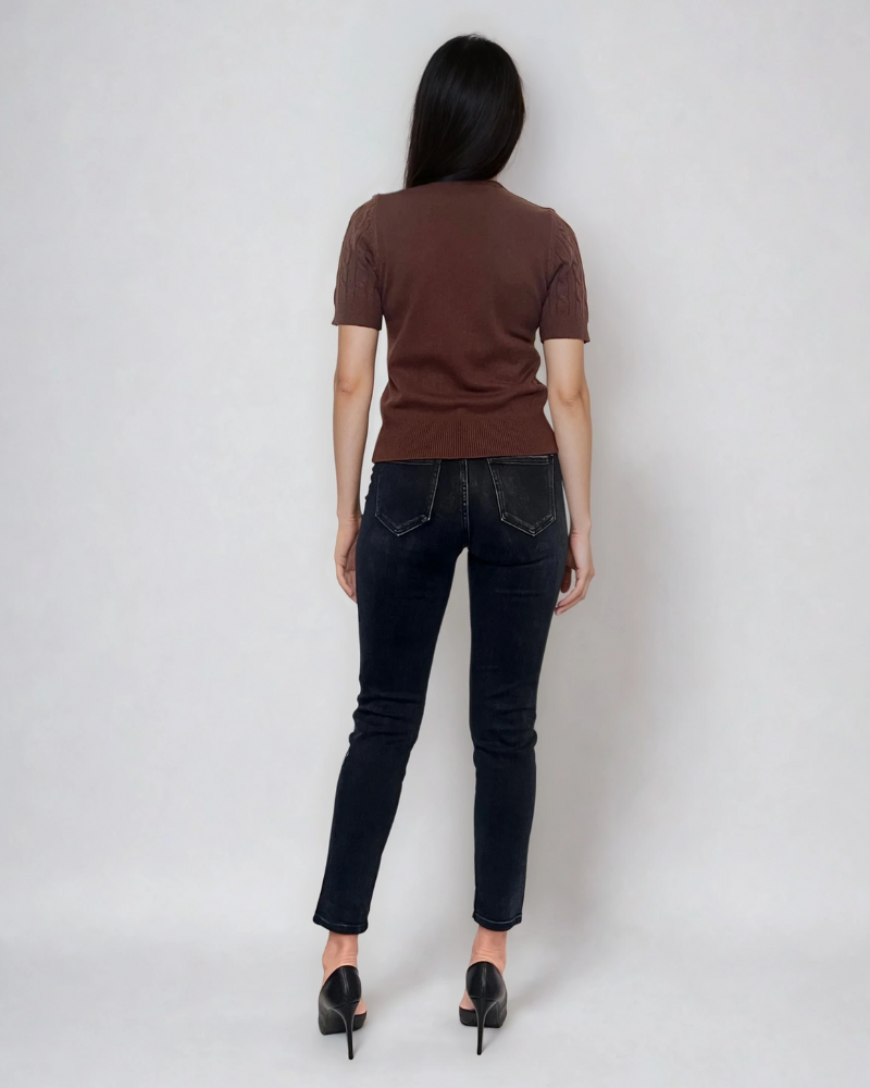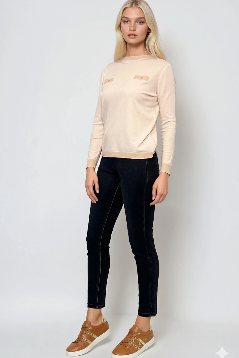 Pulover cu mânecă scurtă ?i nasturi aurii galben