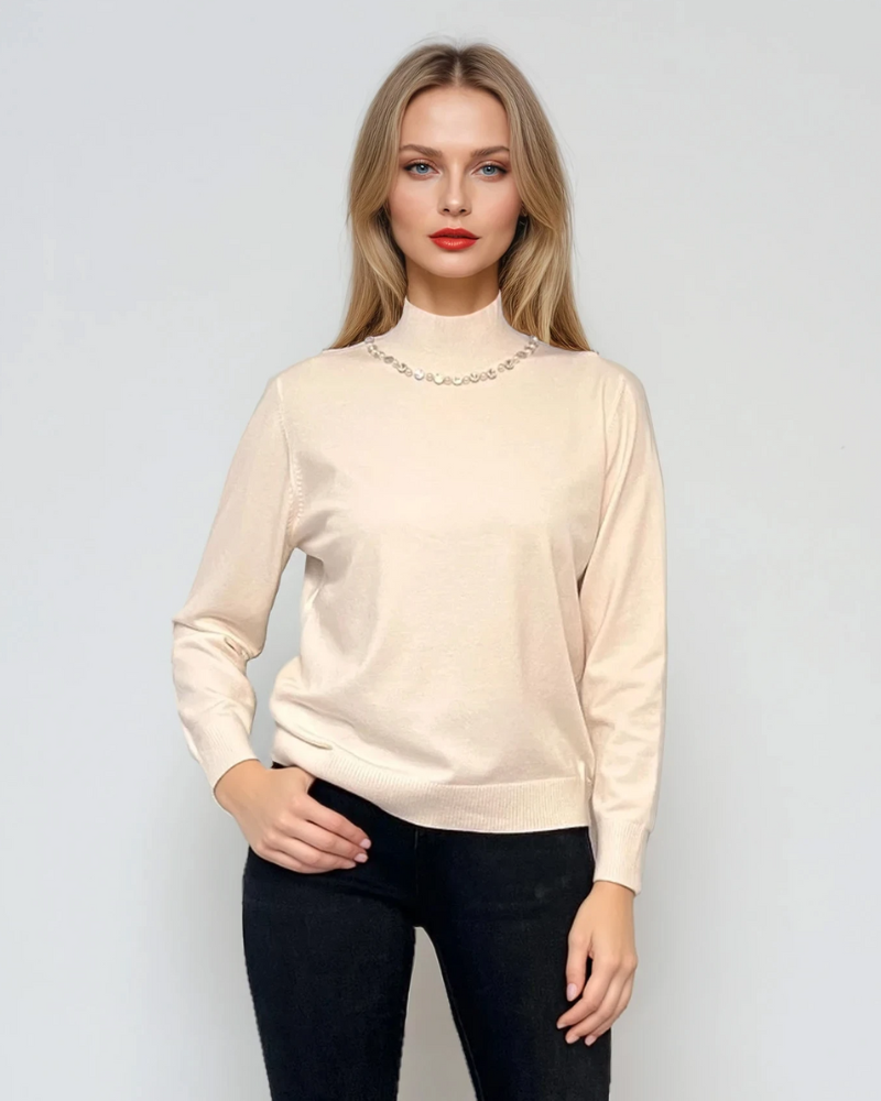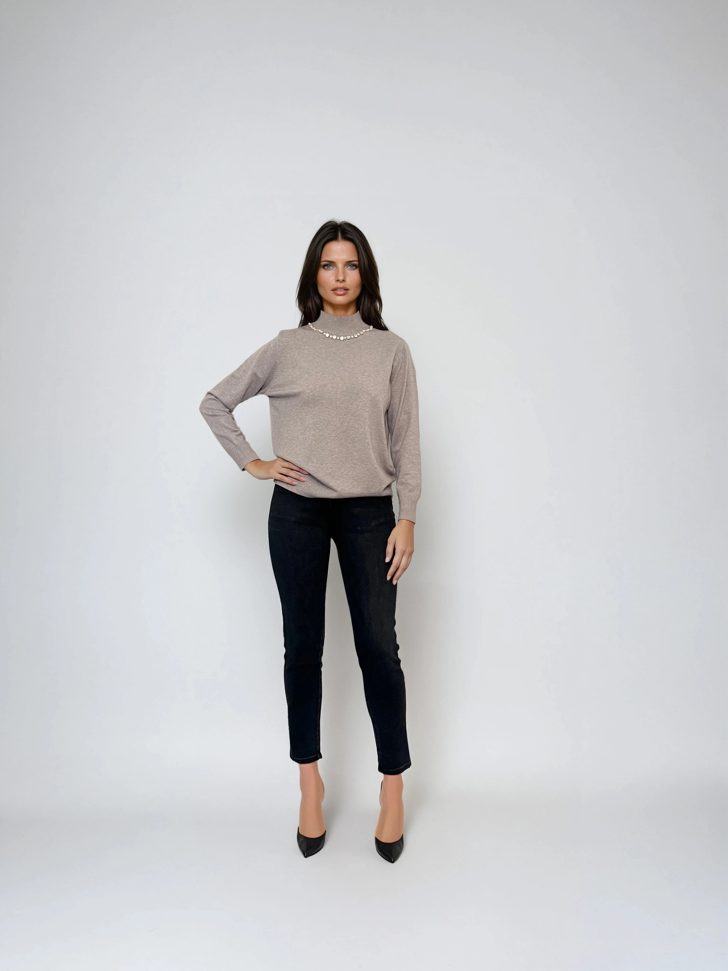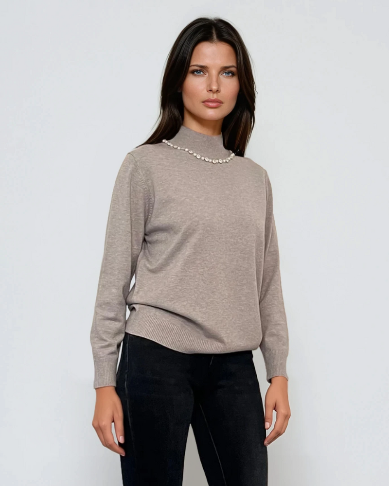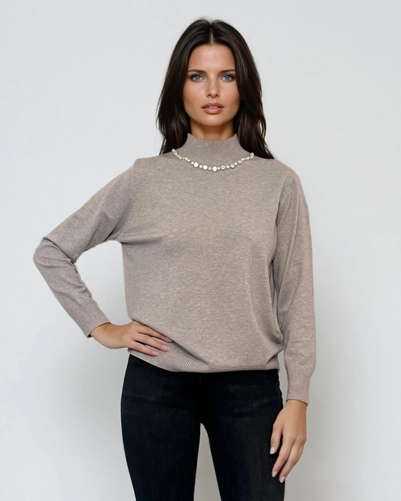 Pulover tricotat cu mânecă scurtă si perle portocaliu