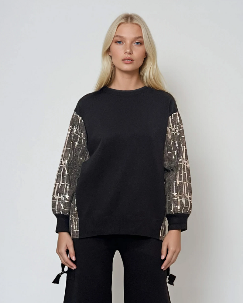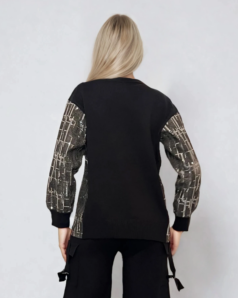 Pulover en-coeur cu nasturi pe mâneci albastru