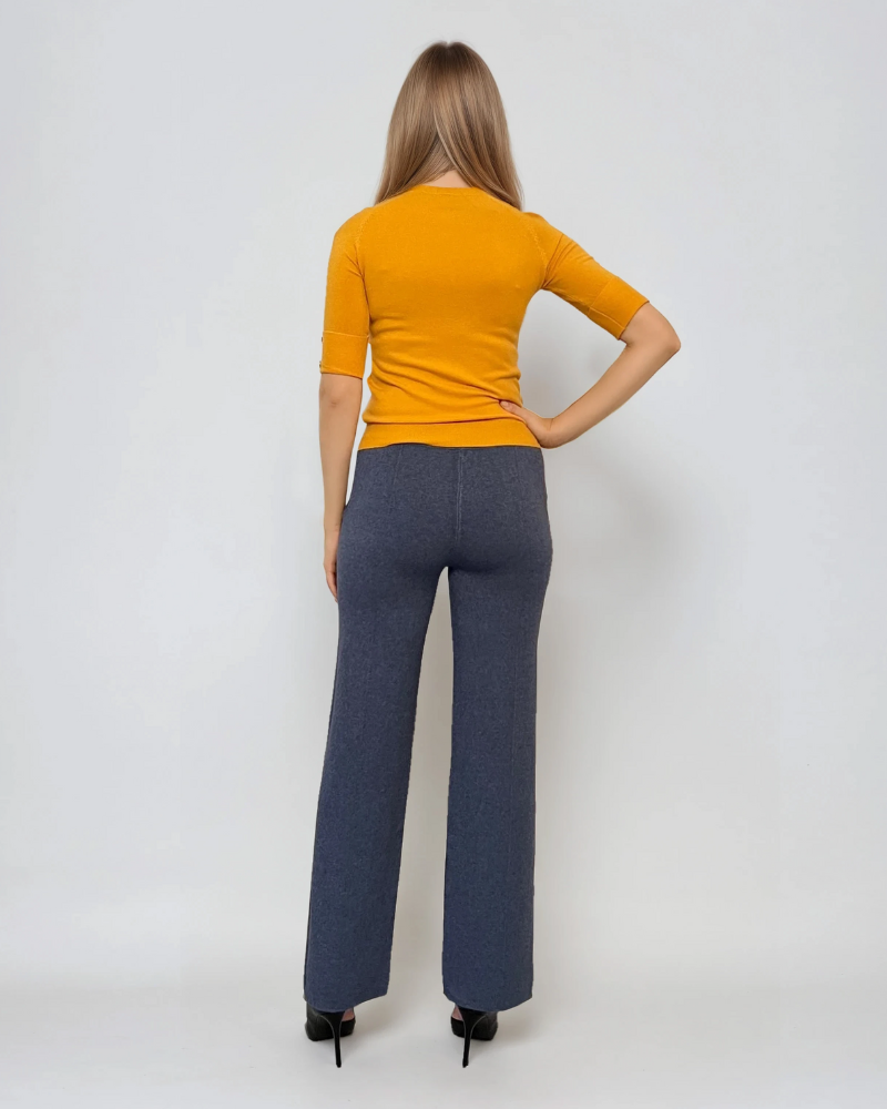 Pulover cu decolteu în V moale si confortabil albastru-jeans