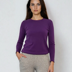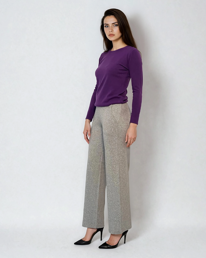 Pulover călduros guler rotund mov oferă un echilibru perfect între simplitate și eleganță. Materialul moale din mix de viscoză îl face extrem de plăcut la purtare, iar croiala dreaptă avantajează orice tip de siluetă.