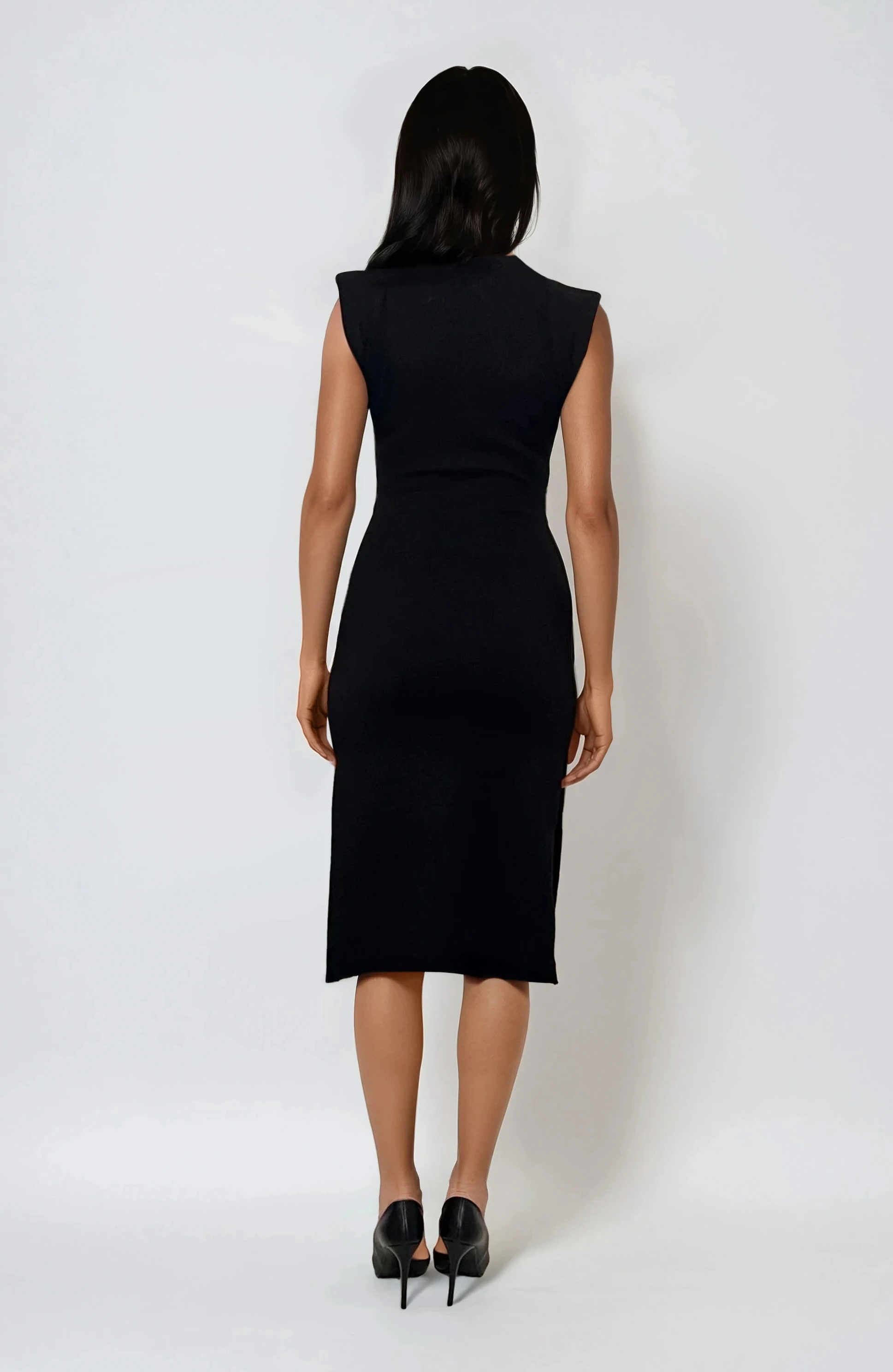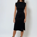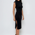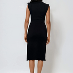 Rochie midi din tricot cu slituri laterale negru, o alegere ideală pentru femeile care preferă eleganța simplă. Textura moale din tricot și umerii ascunși oferă o siluetă rafinată, iar sliturile laterale aduc dinamism și un plus de feminitate.