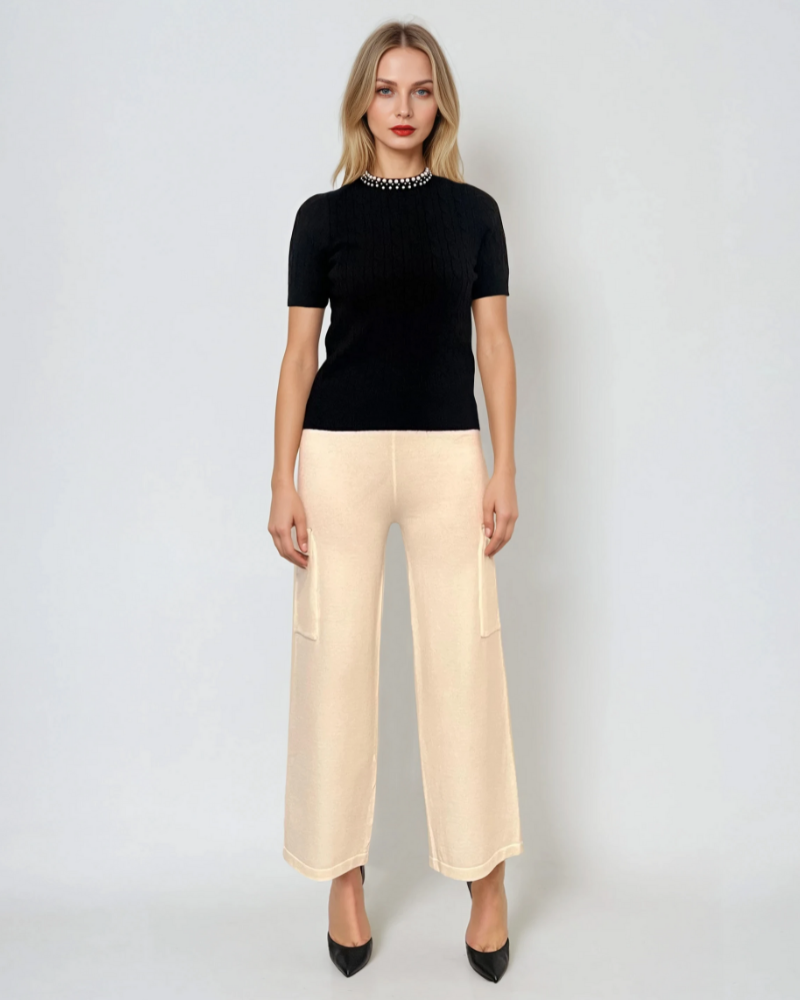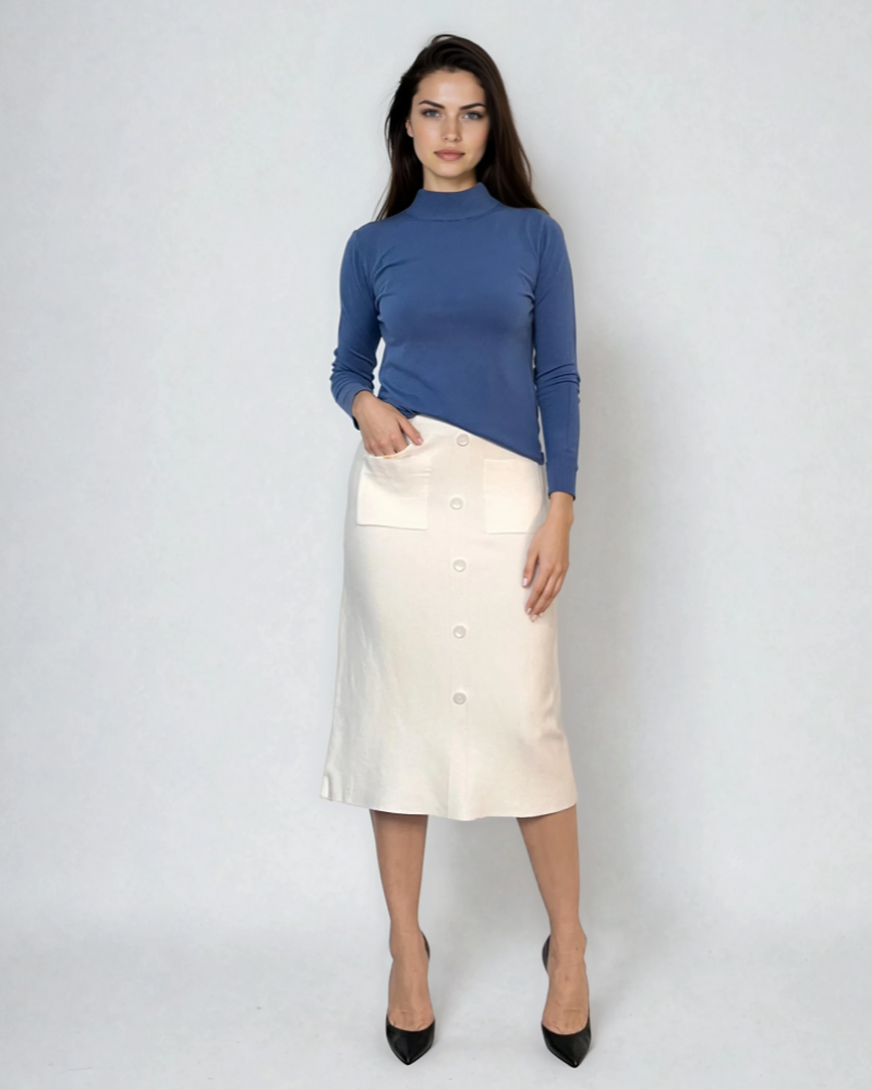 Compleu tricotat casual cu cataramă la buzunare bleumarin