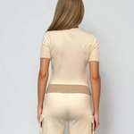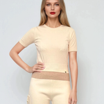 Pulover cu mânecă scurtă și bordură contrast crem