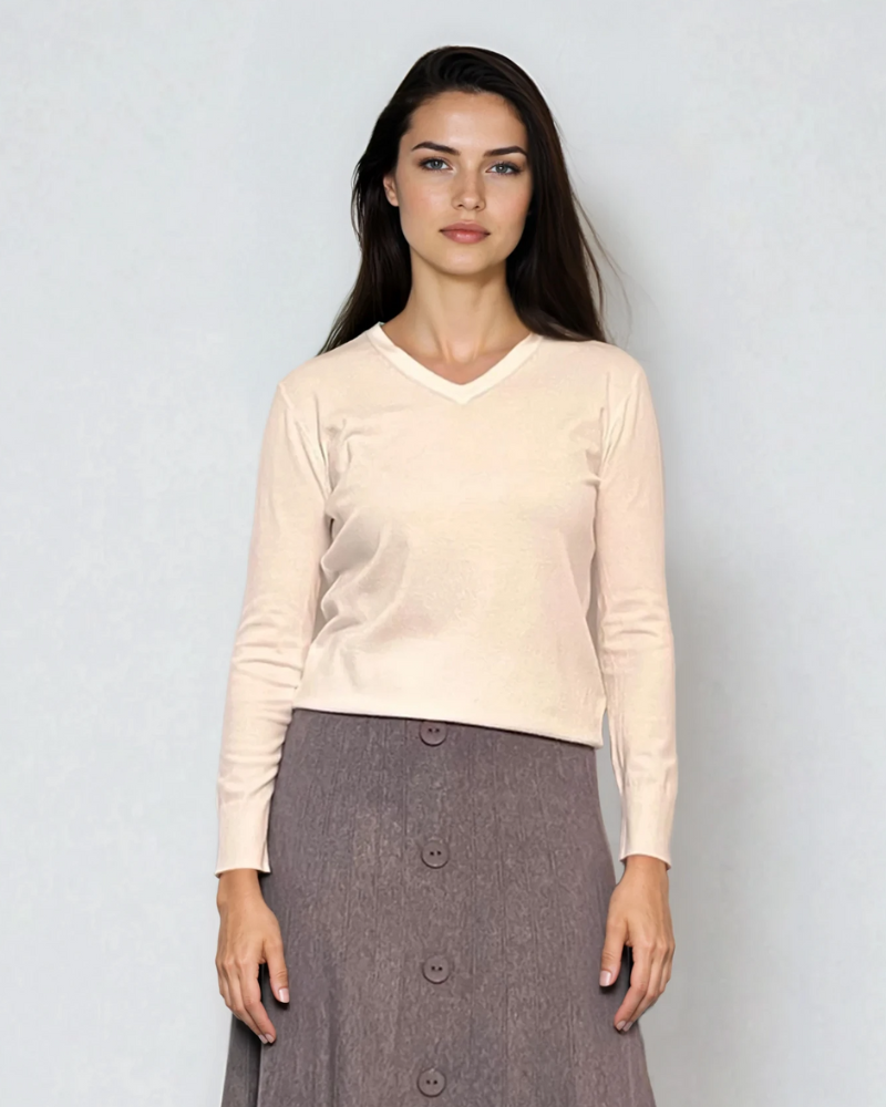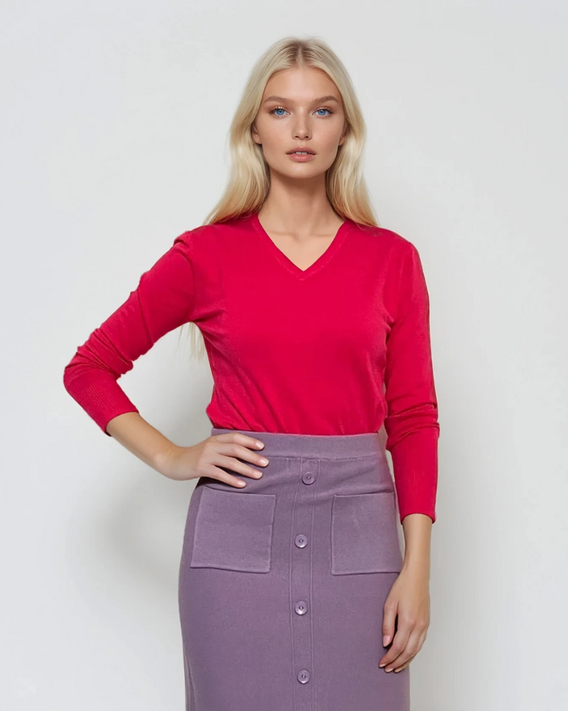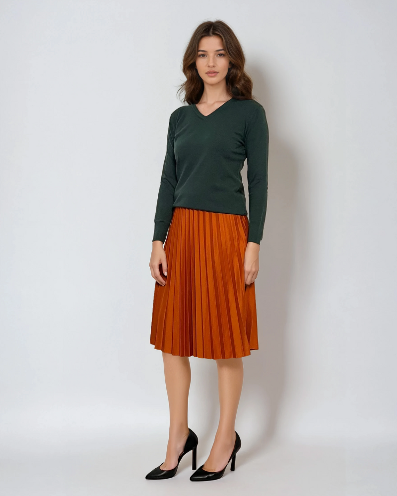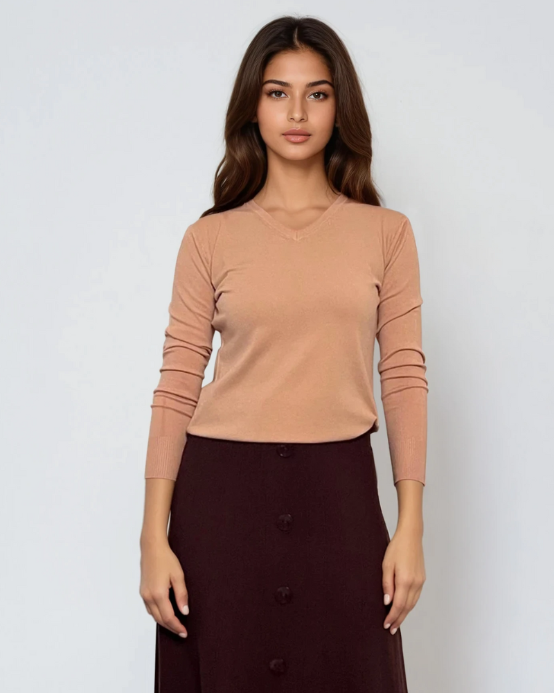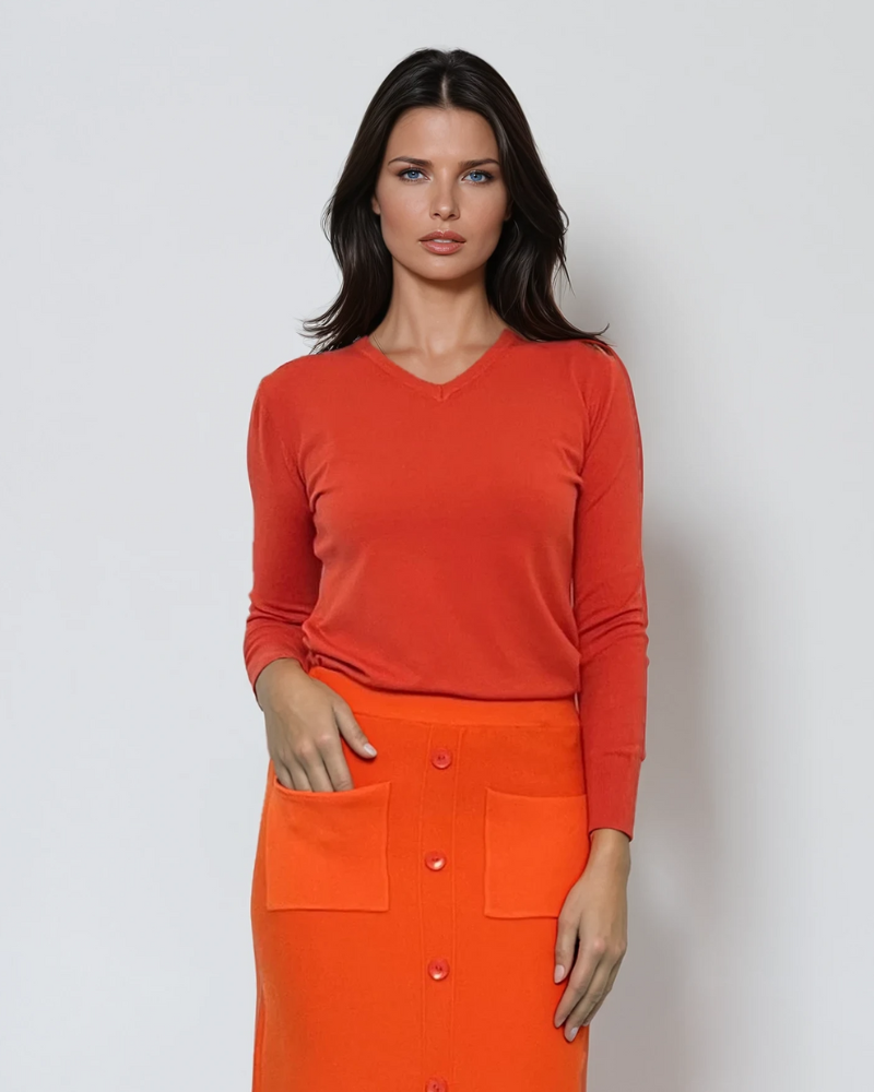Pulover cu decolteu în V moale si confortabil portocaliu
