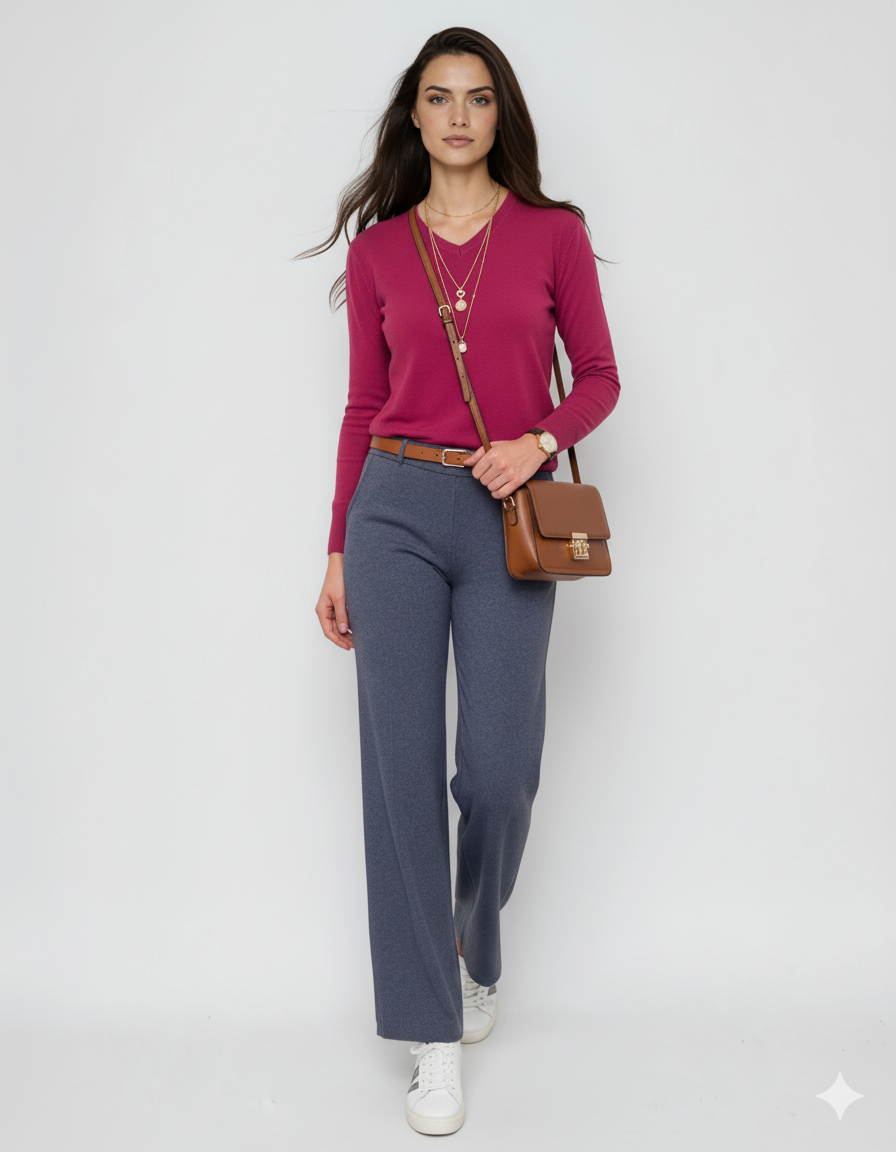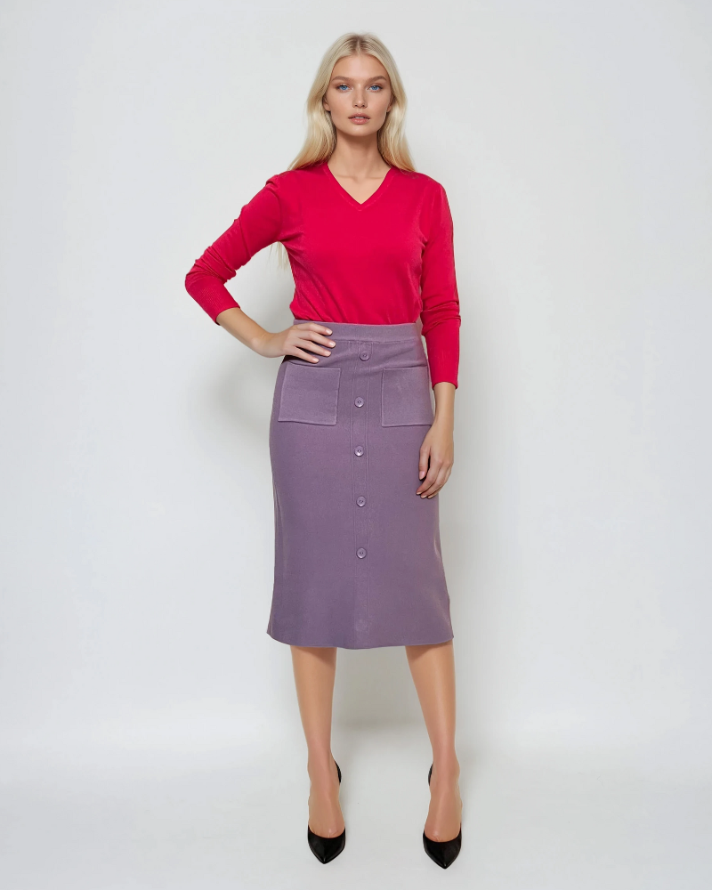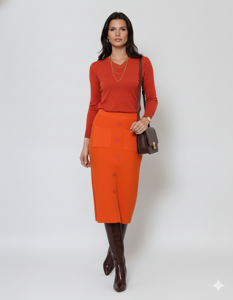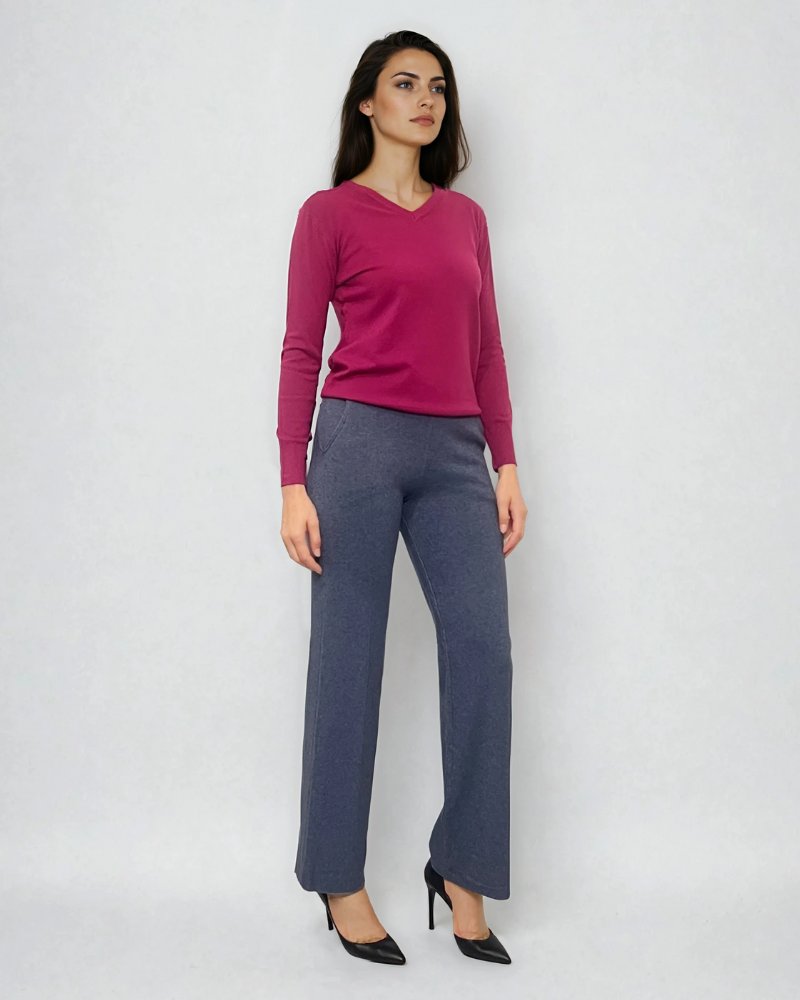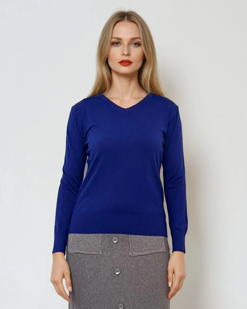 Pulover cu decolteu în V moale si confortabil portocaliu