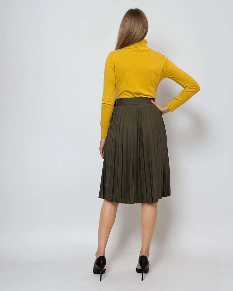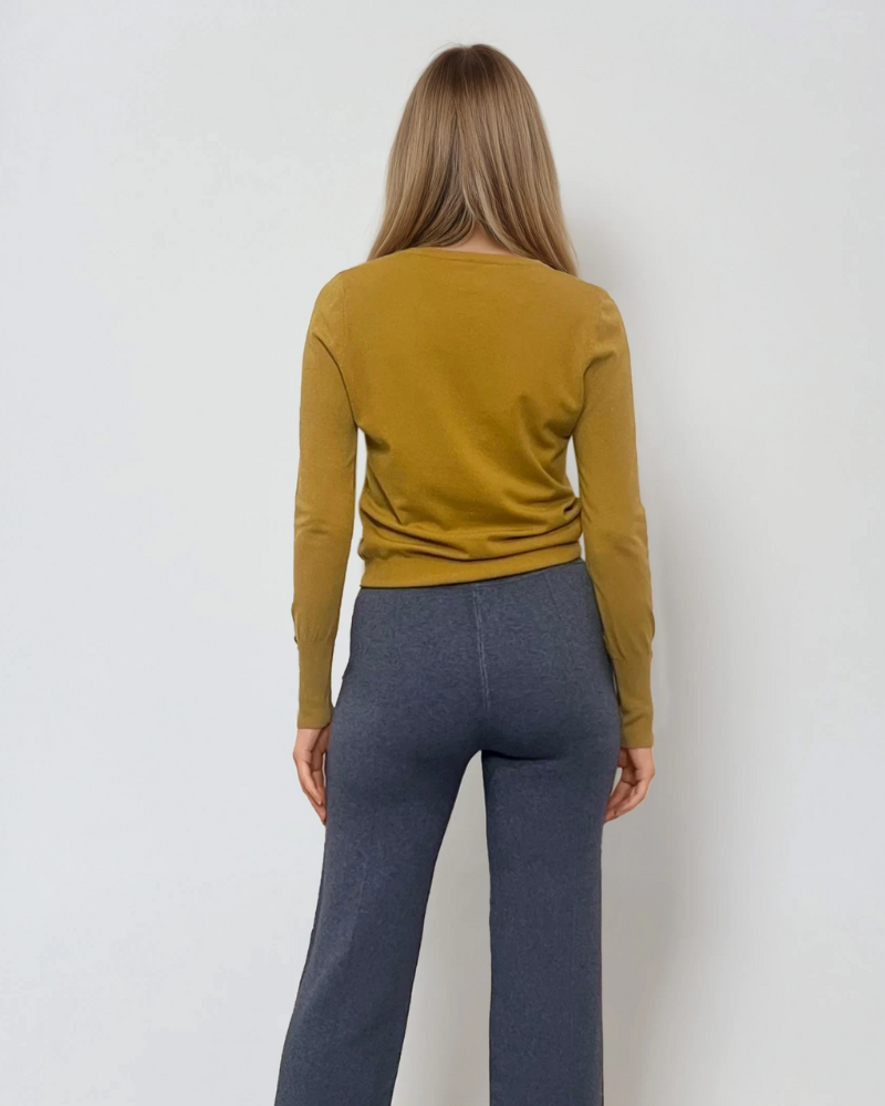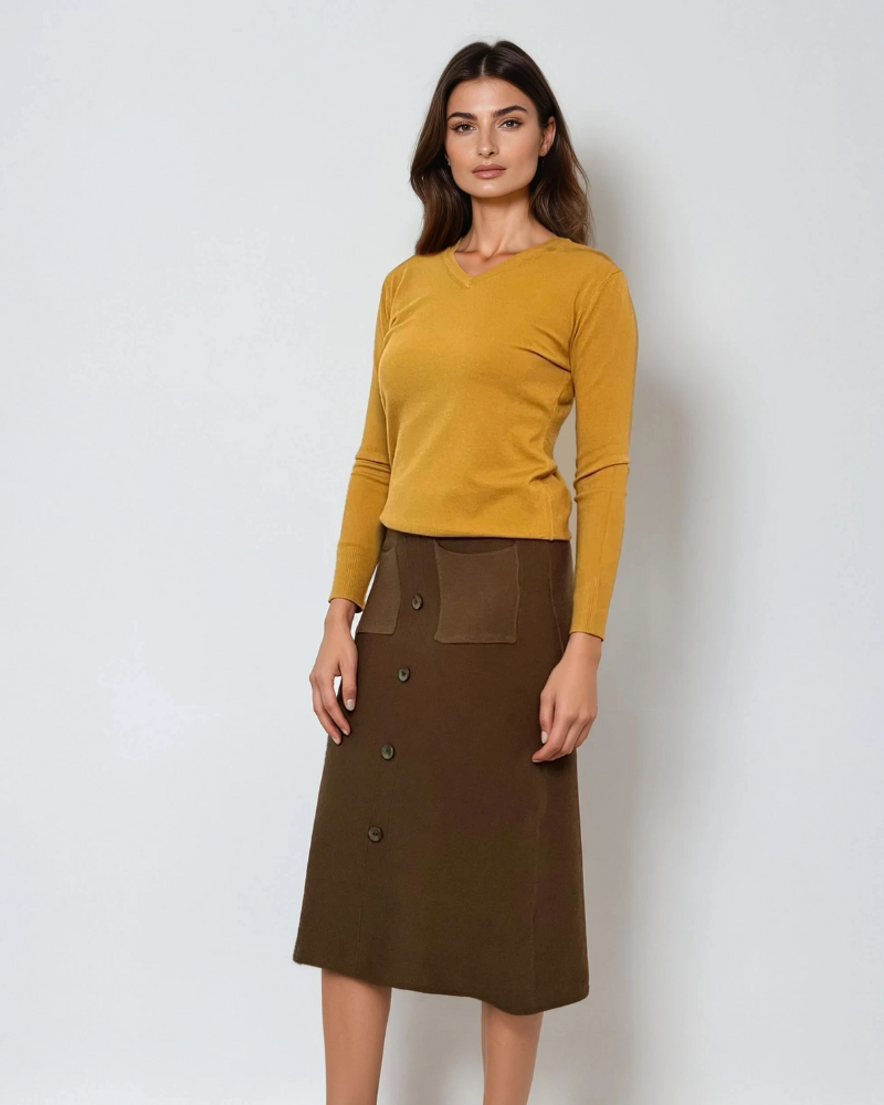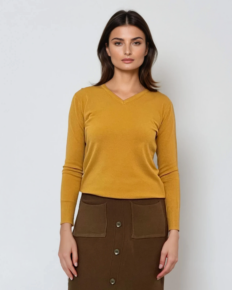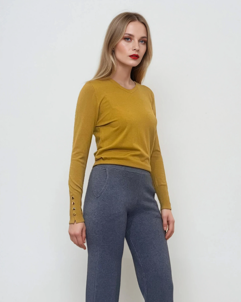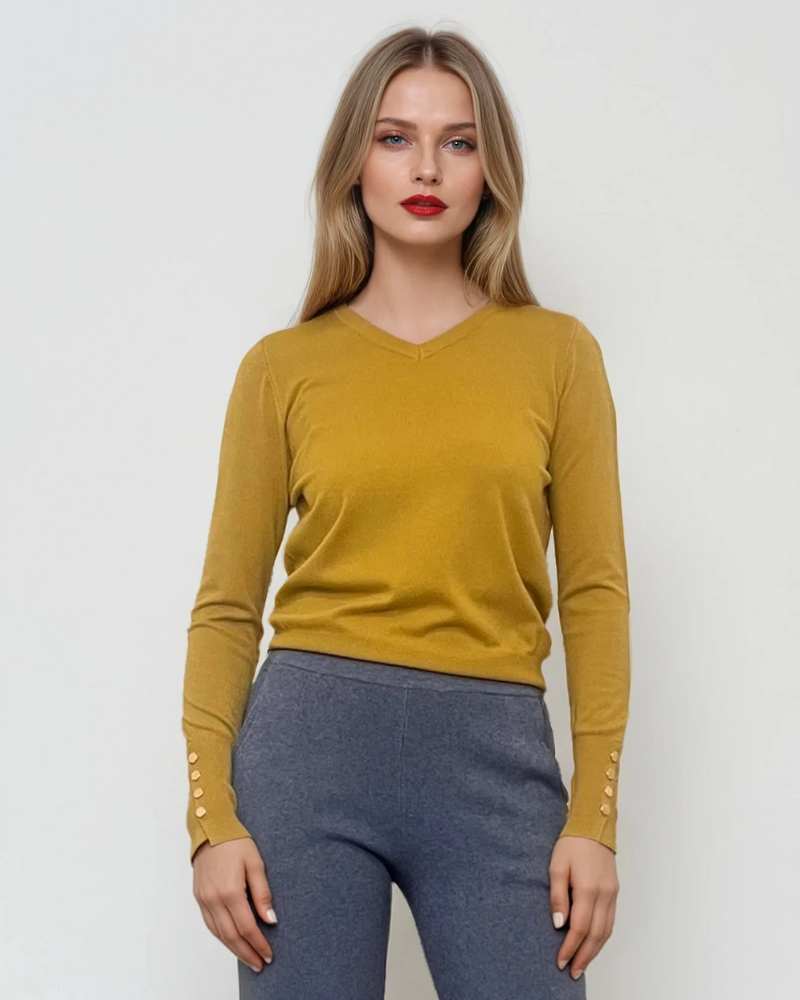 Pulover en-coeur cu nasturi pe mâneci mustar