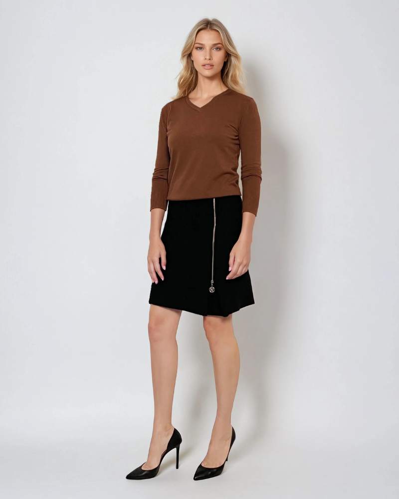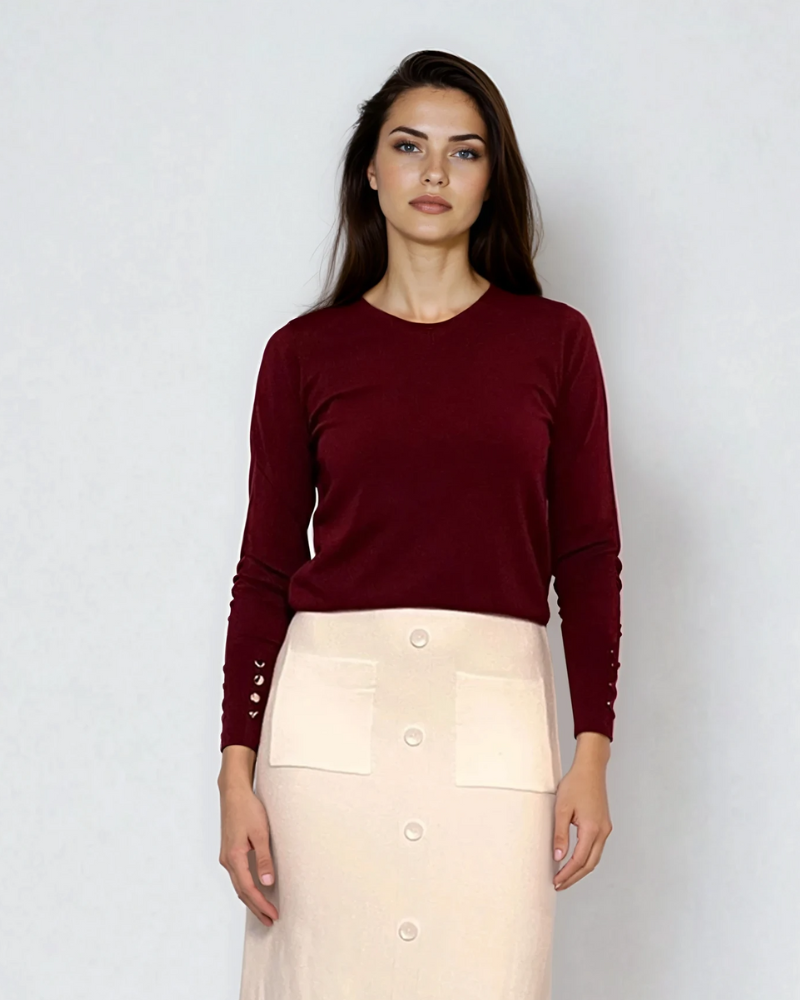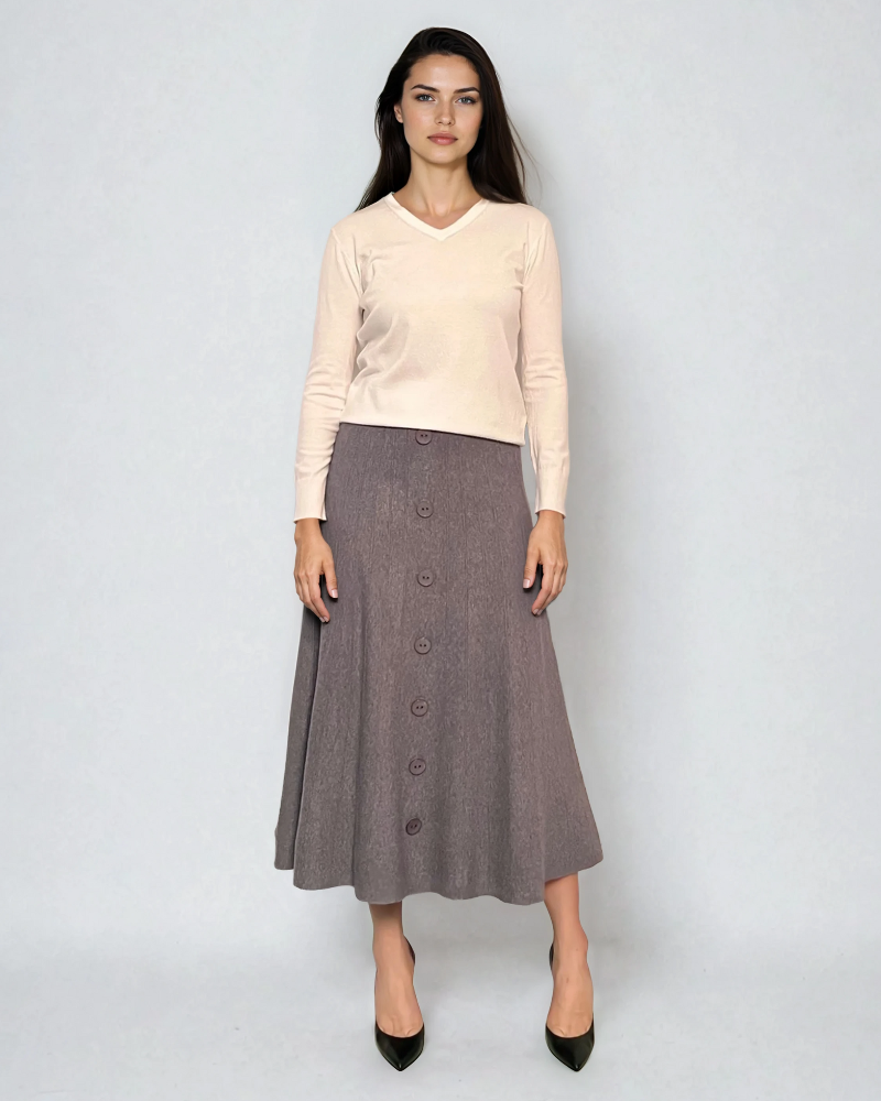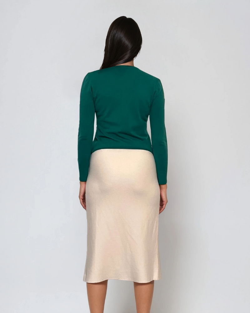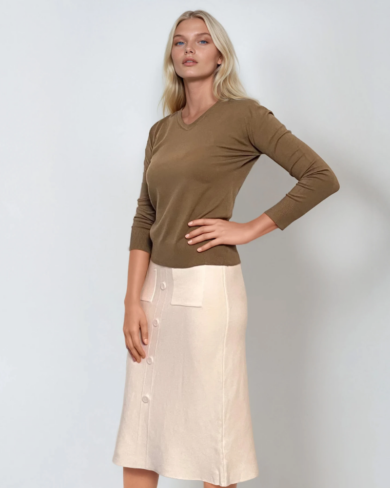 Pulover en-coeur cu nasturi pe mâneci kaki